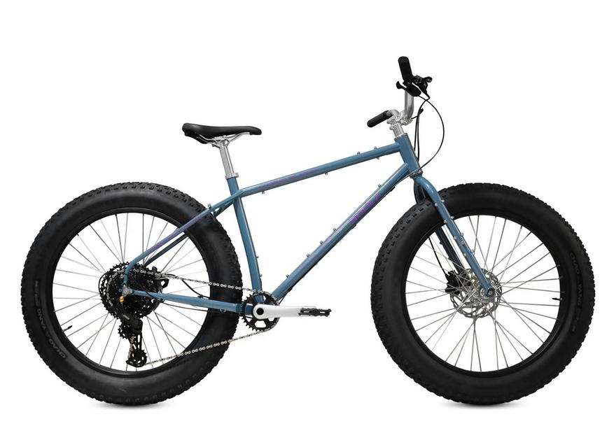 Модель готова для бескамерного использования — поддержка обеспечена как со стороны двойных алюминиевых ободов, так и покрышек ChaoYang Big Daddy 26х4,9″ (60 tpi). Поддерживается установка покрышек максимальной шириной 26х5,05″. Рама выполнена из Cr-Mo 4130 с применением баттинга, вилка также хромолевая. Промподшипники — как обычно у Shulz, во втулках, каретке и рулевой.