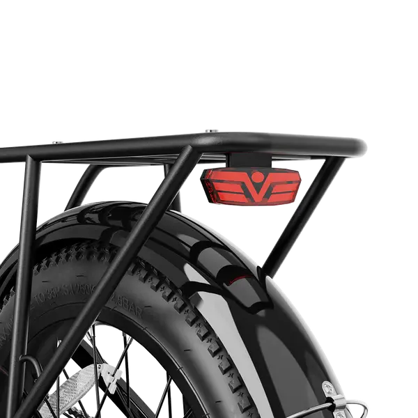 Дисковые тормоза с роторами 180 мм делают возможным полную остановку при скорости 28 миль/45 км в час на расстоянии 8, 5 футов/259 см. Задний переключатель — 7 скоростной Shimano. Колеса собраны на алюминиевых дисках 20"3.012g*36h И покрышках Chaoyang All-Terrain Tire 20"*3.2, 30psi с камерой 20"*3.0″, Valve Stem 32 мм.
