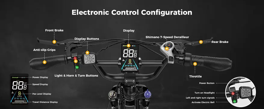 Производитель говорит о 5 уровнях поддержки привода (PAS) и максимальной скорости вращения двигателя величиной 4478 оборотов в минуту (RPM). Также имеется режим «дроссельной заслонки».