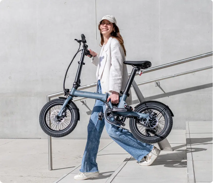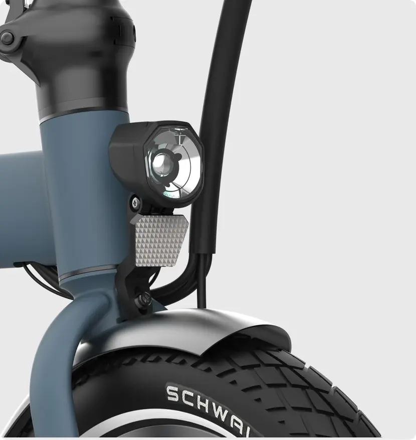 16-дюймовые диски из алюминия обуты в покрышки Schwalbe Pick-up 20 x2.15 дюйма. Тормозная система представлена Shimano MT200, 160 мм роторы. Велосипед Eovolt Morning оснащен складной рамой. В сложенном виде велосипед с размерами 73 x 63,5 x 40 см может поместиться в багажнике автомобиля.