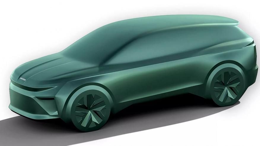 Опубликованное изображение демонстрирует силуэт электрического универсала с низкой посадкой и элегантными пропорциями. Автомобиль характеризуется плавной линией крыши, агрессивно наклоненным лобовым стеклом и задней дверью под острым углом, что улучшает аэродинамические характеристики. Новый дизайн является частью концепции «современного солидного» стиля Skoda для электромобилей следующего поколения.