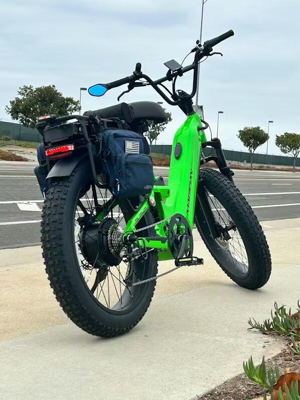 Транспорт оснащен двумя съемными батареями. Основная батарея 72 В характеризуется 20 А*ч (1440 Вт*ч) и размещена внутри рамы. Дополнительная батарея: 72 В, 10 А*ч (720 Вт*ч), установлена на задней стойке.