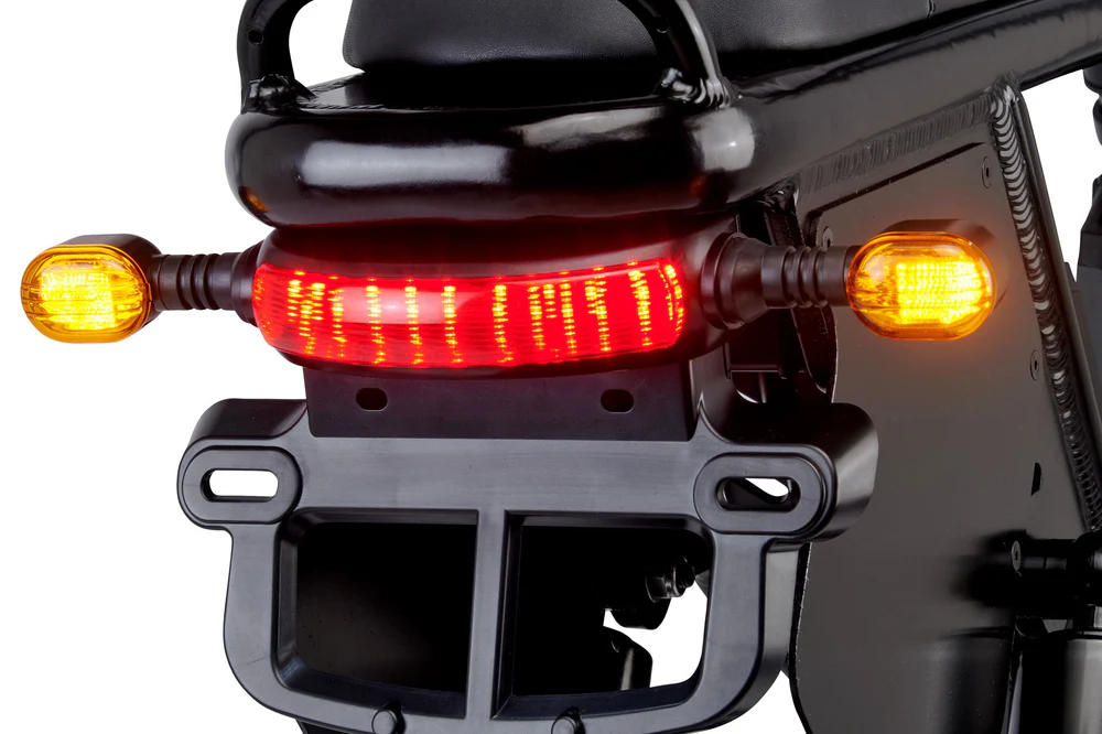Модель оснащена трекером Apple AirTag для отслеживания велосипеда в случае его кражи. Среди других особенностей — фара на 2000 люмен, задние фонари, передние и задние габаритные огни, звуковой сигнал и зеркала заднего вида. Можно дополнительно приобрести стойку и крылья.