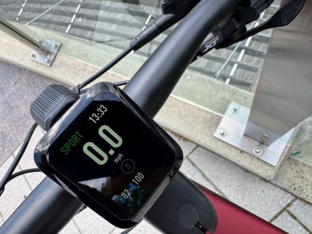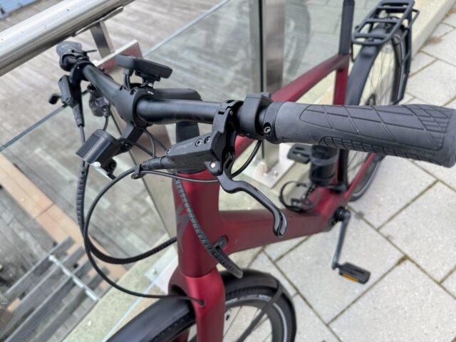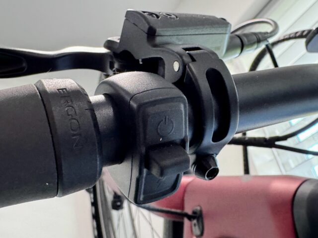 Велосипед оснащен 12-скоростной трансмиссией Shimano Devore XT/SLX с диапазоном кассеты от 10 до 51 зуба. На руле расположен 2,1-дюймовый дисплей, отображающий основную информацию: скорость, частоту вращения педалей, мощность и уровень передачи.