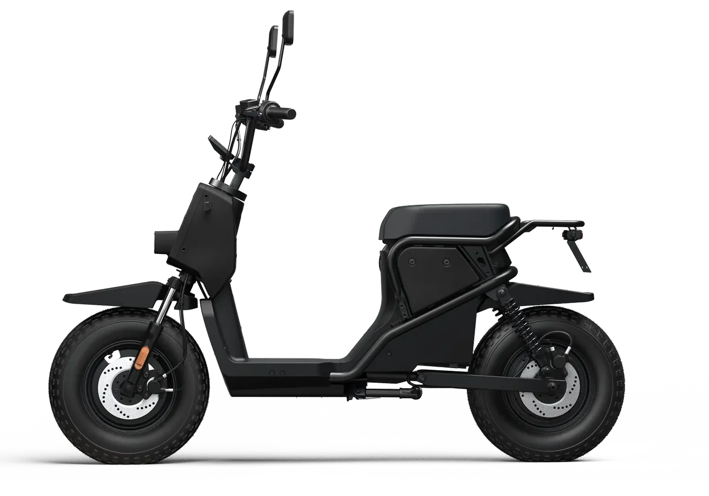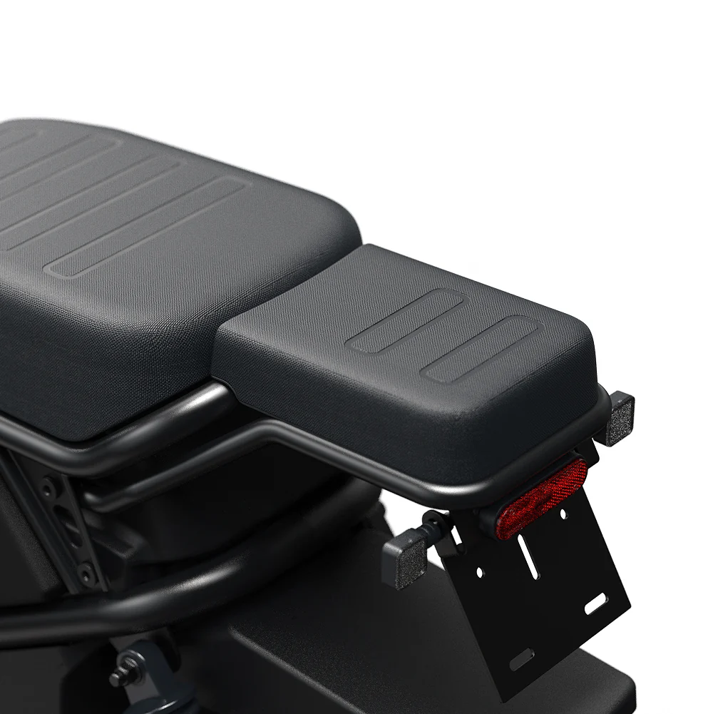 Модель имеет гидравлические дисковые тормоза, которые поддерживают функцию выработки электроэнергии при торможении. На выбор предлагается комплектация аккумуляторами: 60 В 30 А*ч с запасом хода до 70 км или 60 В 50 А*ч с запасом хода до 120 км.