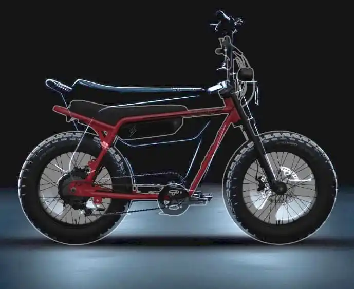 Опубликованное изображение силуэта показывает массивное двухколесное транспортное средство с толстыми шинами, существенно отличающееся от текущей линейки продуктов Super73. Новая модель имеет стилизованную раму с возможными панелями кузова, закрывающими часть традиционного велосипедного силуэта. Отсутствие видимой подвески как в вилке, так и в задней части указывает на жесткую конструкцию.