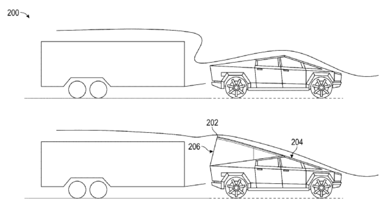 Компания Tesla 2 октября 2025 года подала заявку на патент устройства, предназначенного для улучшения аэродинамических характеристик электропикапа Cybertruck при транспортировке прицепов. Разработка представляет собой надувную конструкцию, которая устанавливается на кузов грузовика.