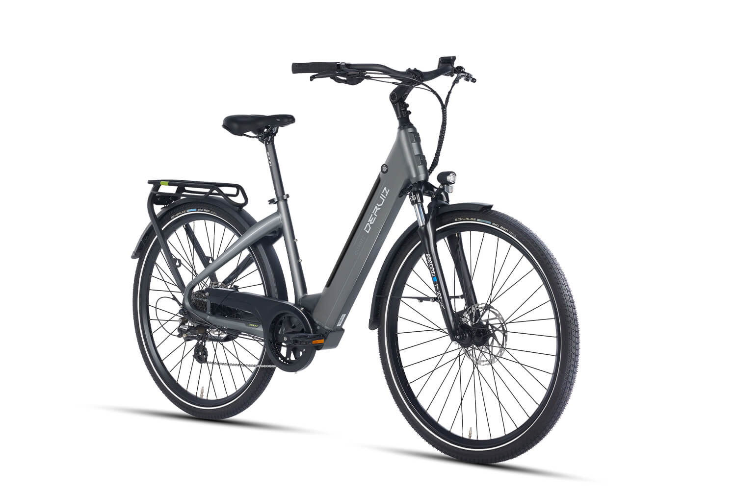 DERUIZ Quartz — это городской электровелосипед с неплохими характеристиками для длительных поездок. Рама с низким входом делает Quartz удобным велосипедом для повседневного использования. Прочная багажная полка, передние и задние брызговики, переднее и заднее освещение и четкий дисплей с поддержкой приложения Bluetooth входят в стандартную комплектацию Deruiz Quartz.