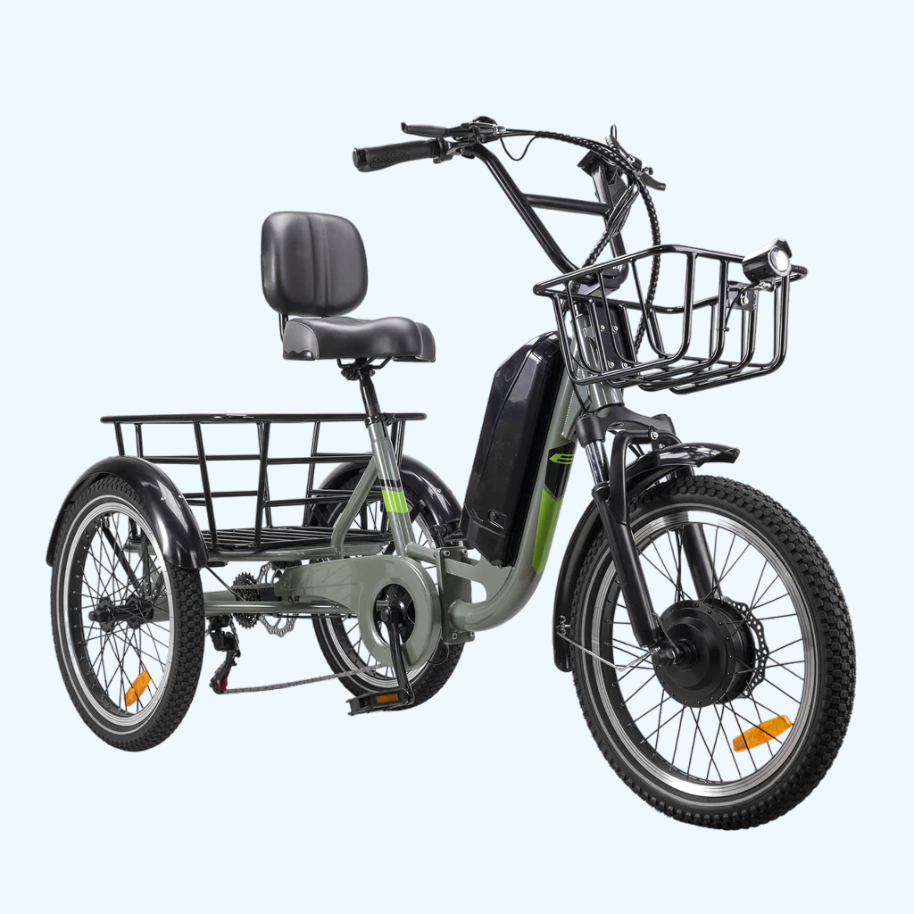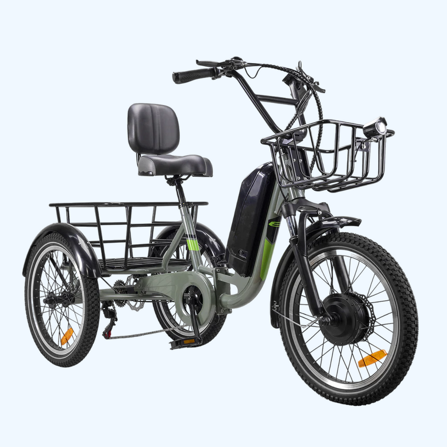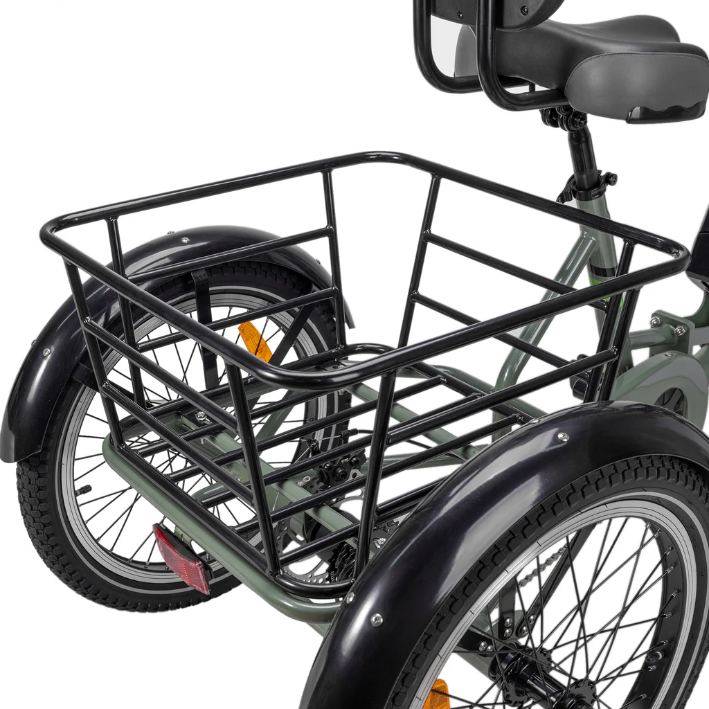 Грузовой велосипед отличается просторными багажными отсеками и корзинами для перевозки грузов с высокими краями спереди и сзади. Максимальная устойчивость и управляемость достигается с покрышками 20 * 2,35 дюйма — они подходят для любой местности.