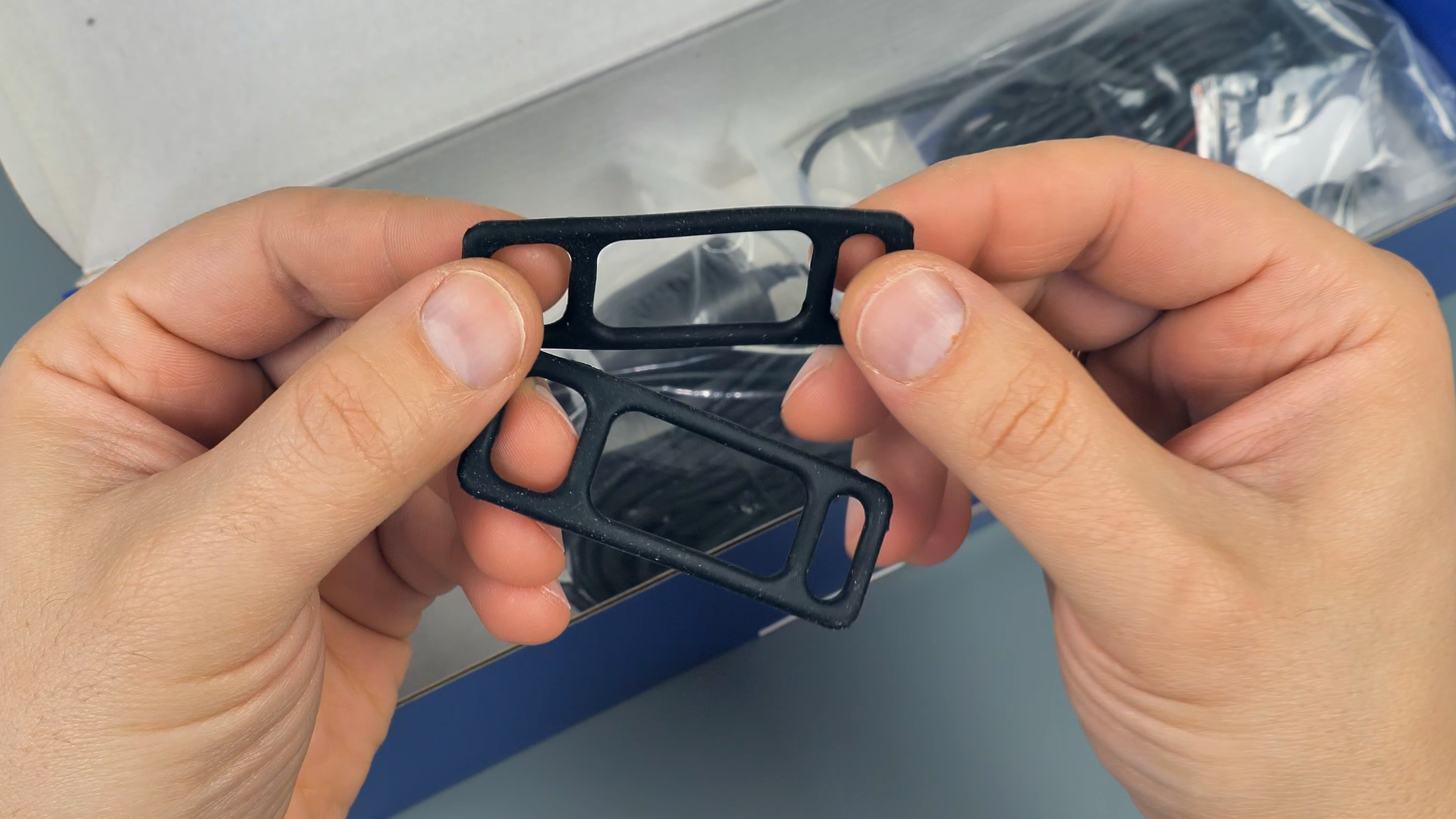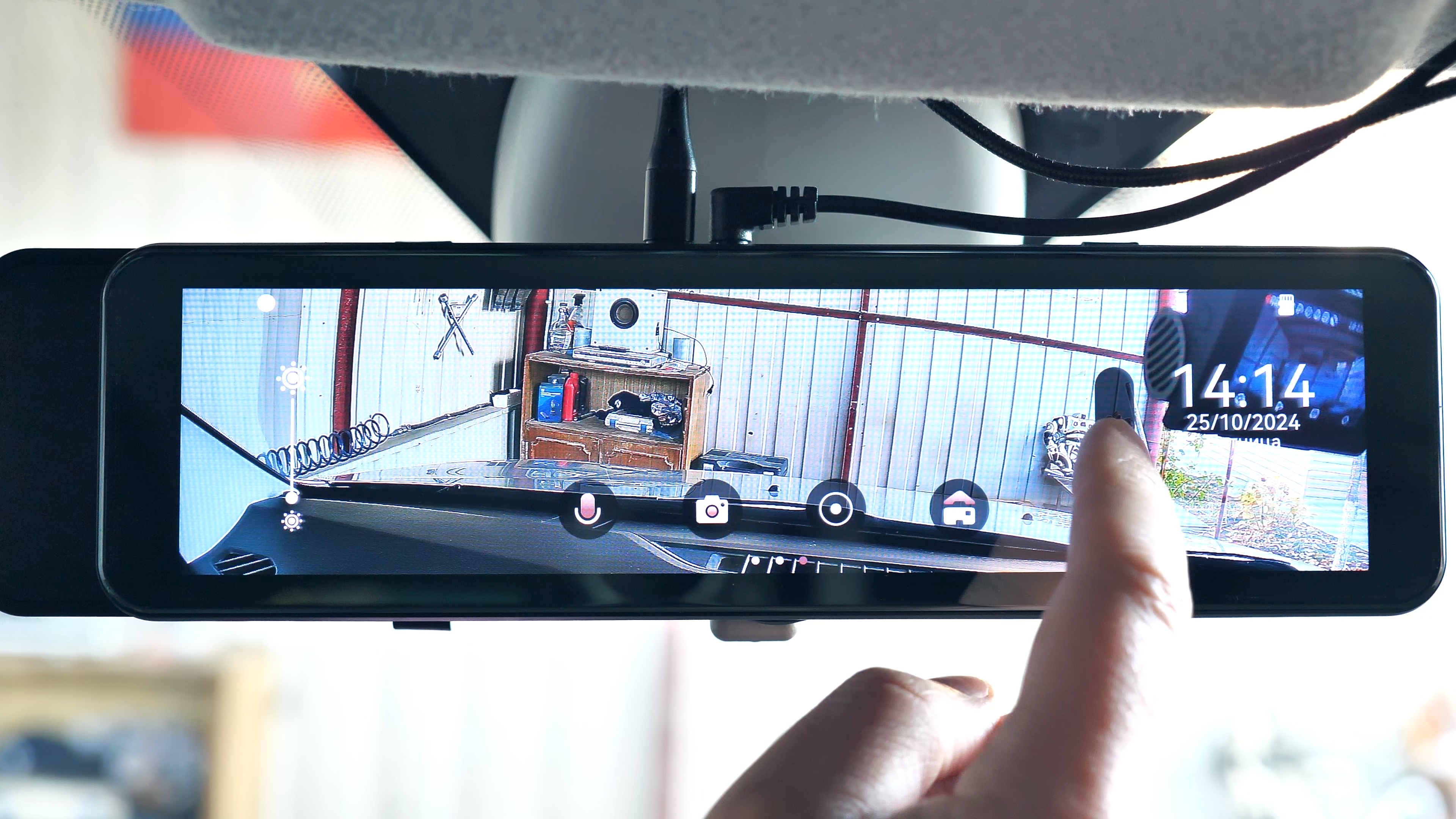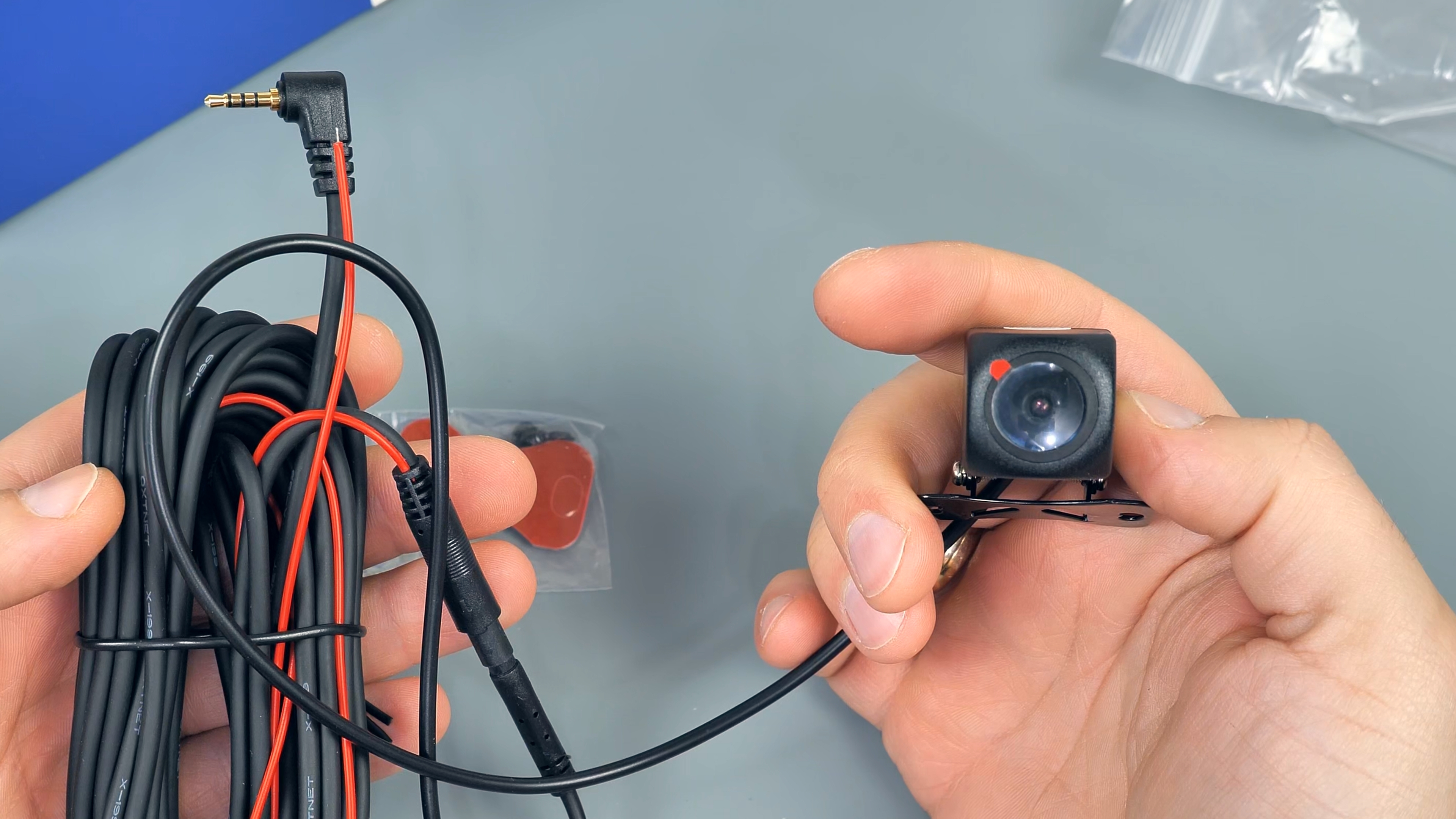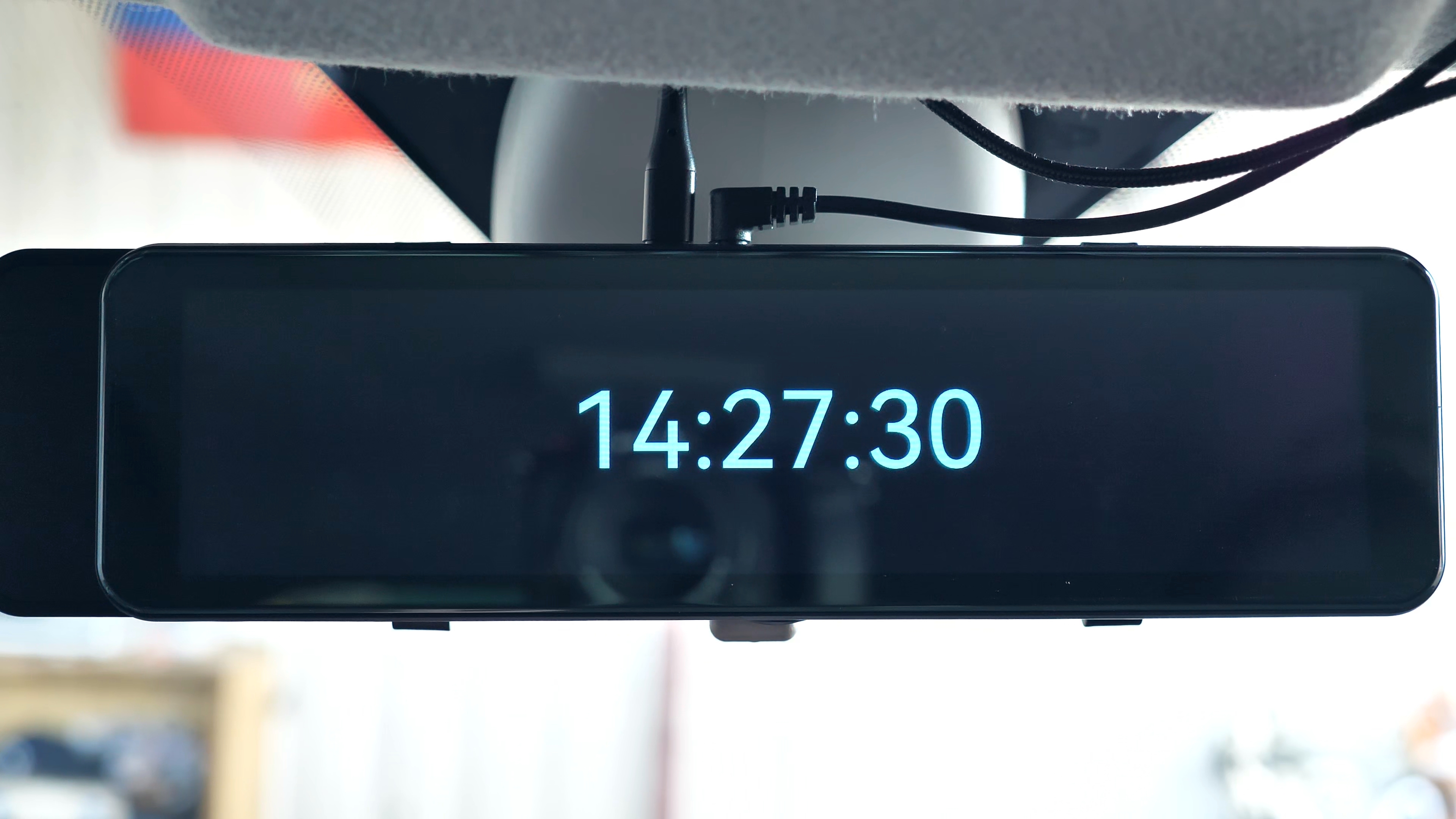В комплекте с зеркалом идут: 2 резиновые стяжки для фиксации зеркала-регистратора на штатном зеркале автомобиля; блок питания в прикуриватель автомобиля с USB Type-C разъёмом, блок способен работать как в 12V бортовой сети автомобиля, так и в 24V, мощность устройства составляет 15W и способно выдавать до 3А тока при 5V; подробная иллюстрированная инструкция пользователя на русском языке; задняя внешняя камера с 6-ти метровым удлинительным кабелем, он имеет ответвление в виде красного провода, который подключается к лампе заднего хода автомобиля; а также двухсторонний скотч и/или два винта для установки задней камеры.