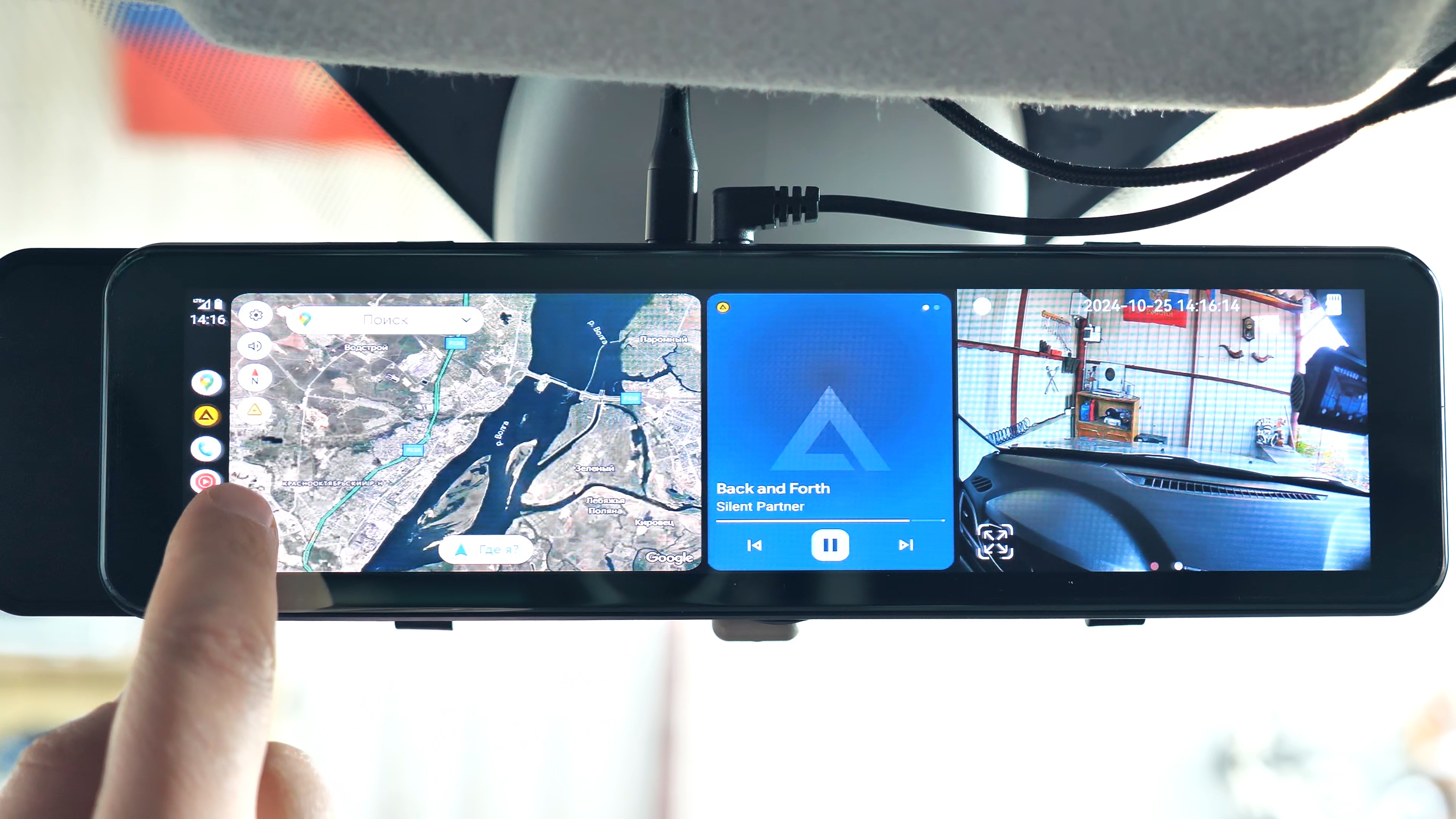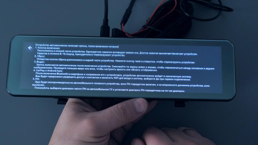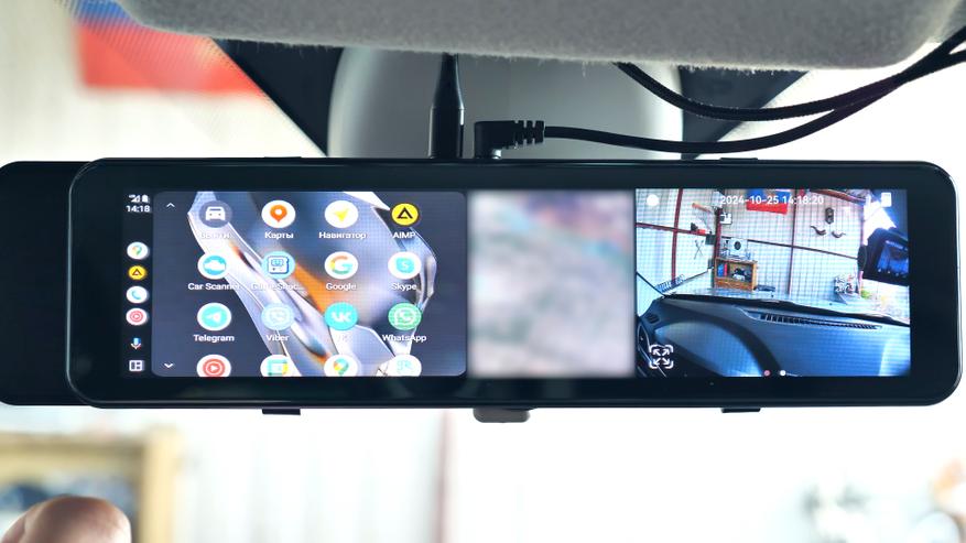 Зеркало и снимает хорошо и много умеет: фиксирует обстановку впереди и позади автомобиля, помогает парковаться и двигаться задним ходом, даже парковочные линии можно выставить под свой автомобиль, ведёт наблюдение на парковке в разных режимах, поддерживает Apple CarPlay и Android Auto с возможностью навигации, прослушивания музыки и возможности совершать звонки с поддержкой функции Hands Free через штатную акустическую систему автомобиля с абсолютно любой магнитолой, так как вещание происходит в FM диапазоне.