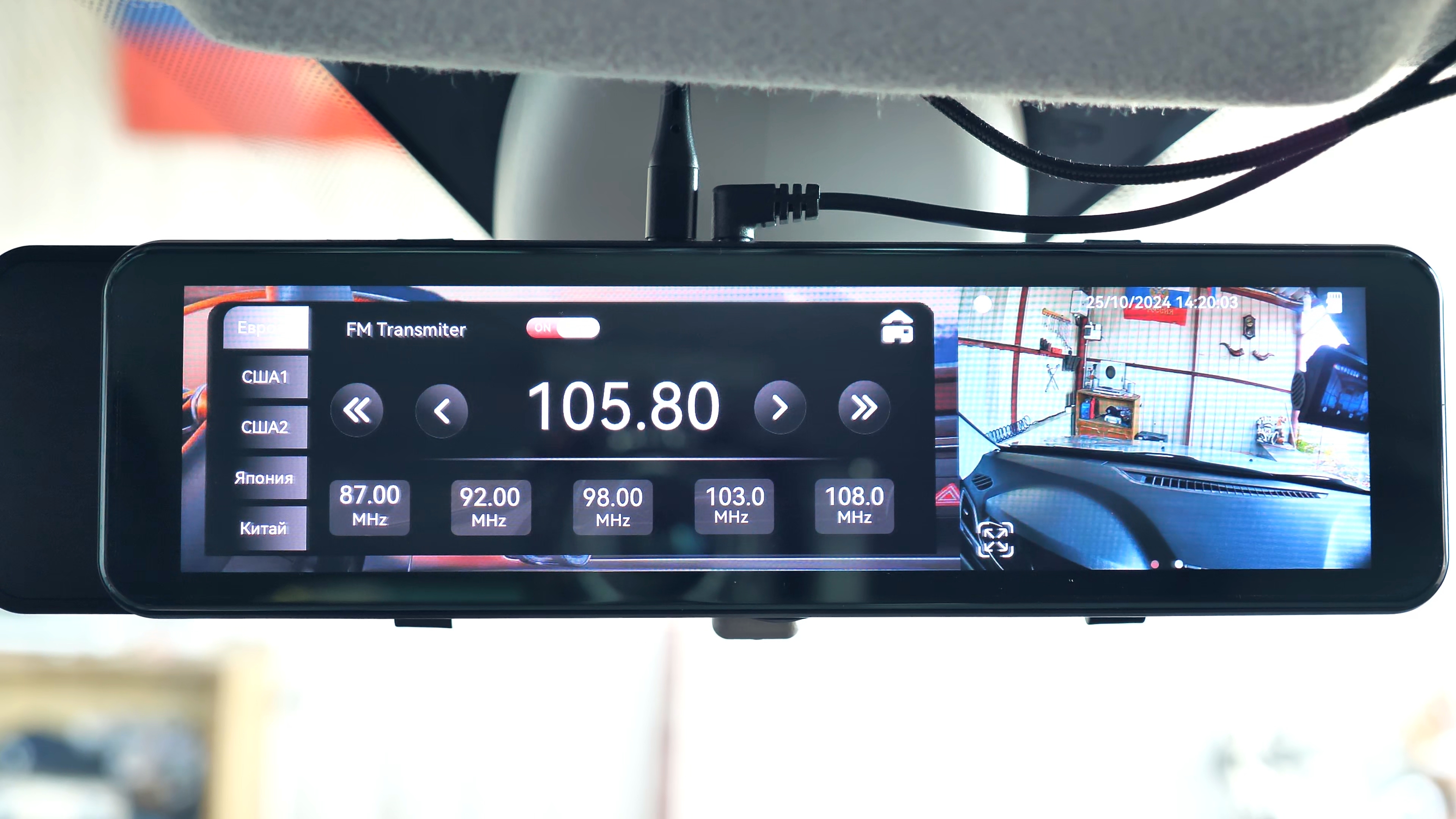 В настройках можно указать на какой FM частоте зеркало будет вещать и на эту частоту нужно настроить аудиосистему автомобиля. Зеркало способно работать с любой автомобильной магнитолой, а не только с теми, которые имеют Bluetooth модуль, поскольку каждая, даже самая простая магнитола имеет FM приёмник.