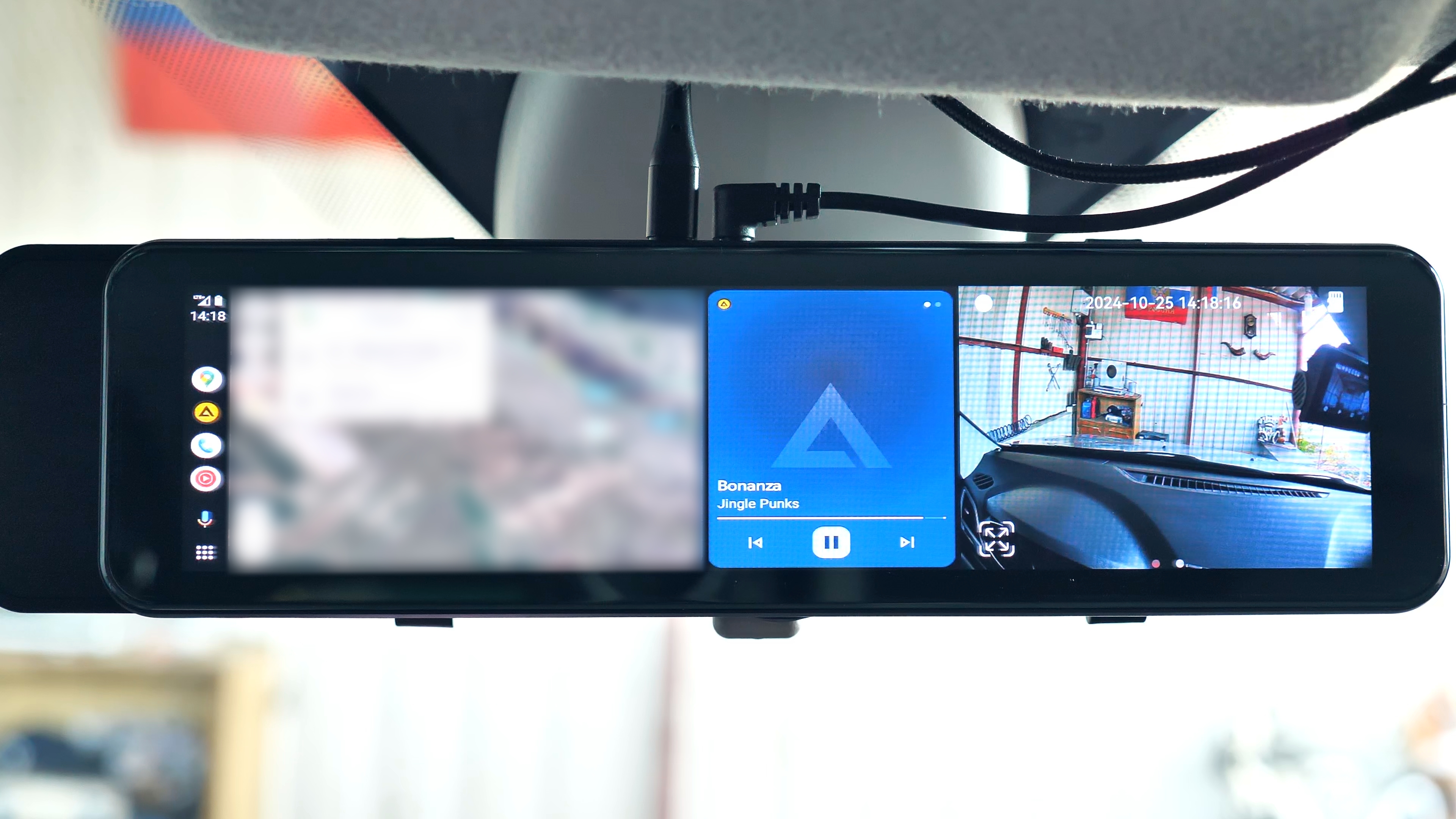 Воспроизводится музыка со смартфона как со стриминговых площадок, так и с оффлайн плеера, есть полный доступ к контактам смартфона, можно как принимать, так и совершать звонки, в том числе при помощи голосового помощника. Звук идёт не через динамики зеркала, а через штатную акустику автомобиля, поскольку зеркало имеет функцию FM-трансмиттера.