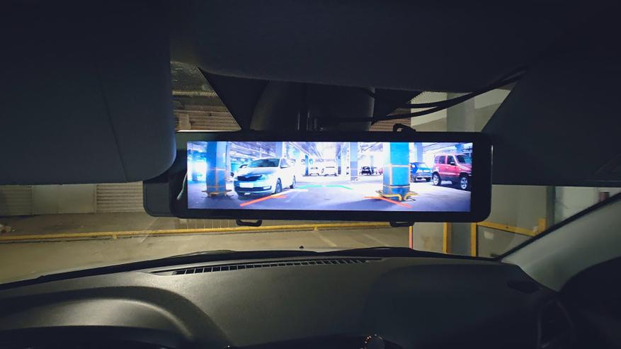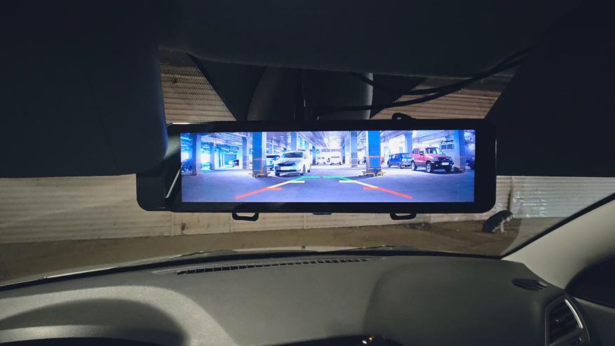 Благодаря наличию задней камеры и возможности подключения к лампе заднего хода автомобиля зеркало способно выполнять функцию парктроника и помогать парковаться задним ходом, оно автоматически переключается на заднюю камеру и выводит парковочные линии при каждом включении задней передачи. Также зеркало имеет возможность наблюдения на парковке по датчику удара или непрерывно в режиме таймлапс, что существенно сэкономит место на карте памяти.