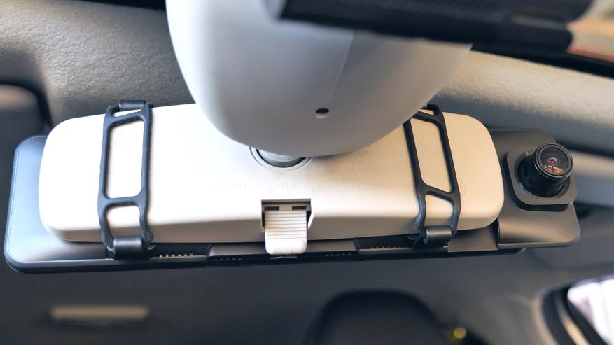 Данная конструкция позволит без труда расположить зеркало таким образом, чтобы им было комфортно пользоваться именно как зеркалом, то есть видеть отражение обстановки позади автомобиля и при этом правильно настроить угол обзора камеры, чтобы она фиксировала всё, что происходит спереди.