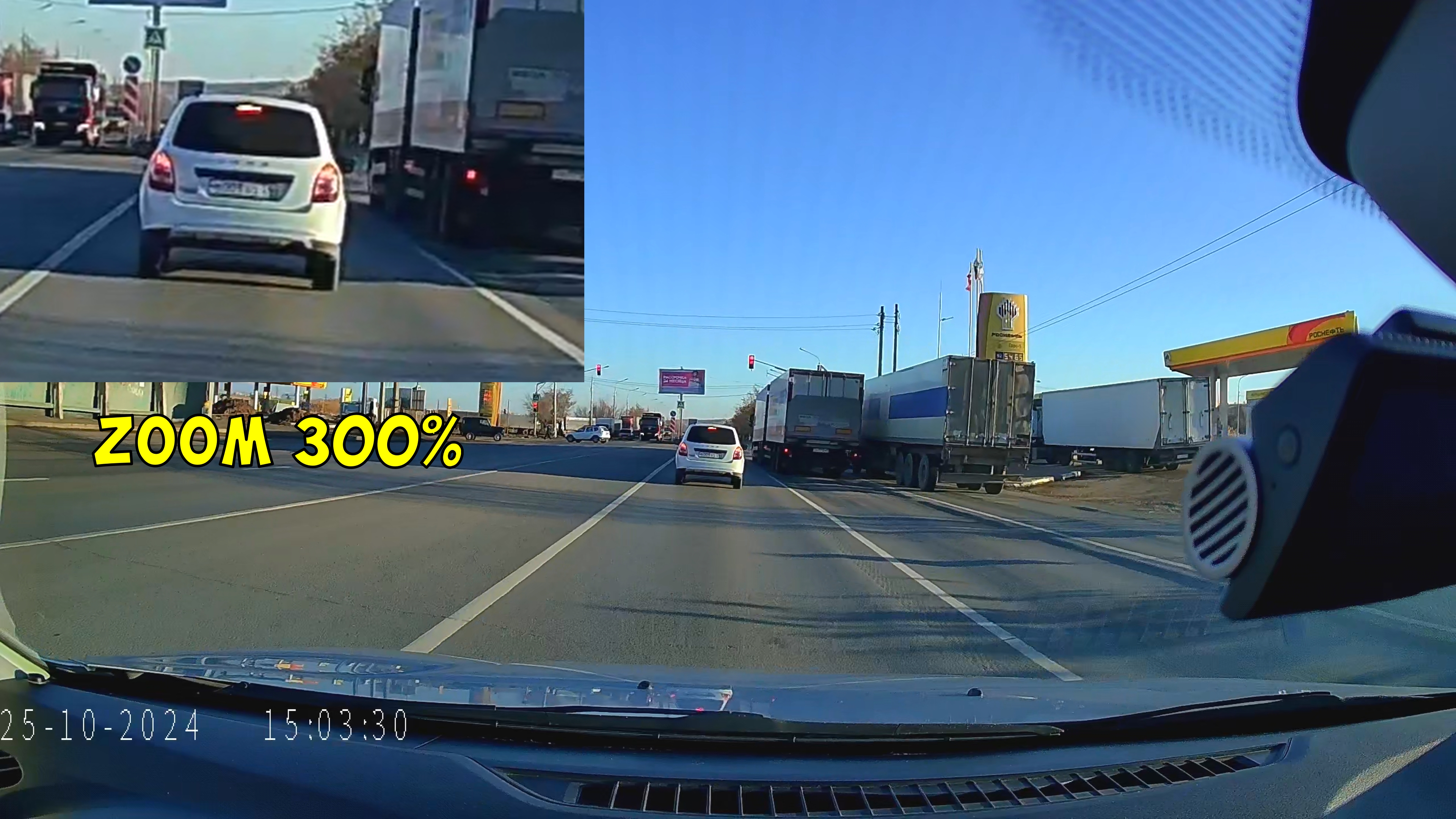 Но ещё сильнее негативный эффект от них в тёмное время суток, вокруг источников света прям заметны ореолы и искажения. Но это не проблема данного регистратора, любой регистратор, находящийся на отдалении от стекла видит их, поскольку они попадают в его фокус. Если нитей подогрева в стекле нет, то картинка будет чистой, без искажений, если есть, как в моём случае, то будет наблюдаться вот такой эффект. Несмертельно, но вот такой вот нюанс эти нити привносят.