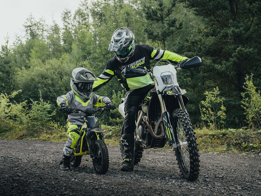 Разработка новой продукции стала возможной после приобретения Triumph в 2022 году компании OSET, специализирующейся на производстве электрических триальных мотоциклов. Представленные модели построены на электрической платформе с рамами и геометрией, специально разработанными для юных райдеров.