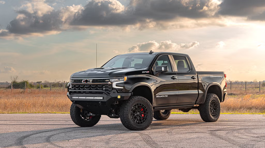 Компания Hennessey Performance из Техаса представила эксклюзивную модификацию пикапа 2026 Chevy Silverado 1500 ZR2 под названием Goliath 700. Инженеры тюнинг-ателье решили проблему, которая давно обсуждалась среди поклонников внедорожных пикапов: штатный 6,2-литровый V8 мощностью 420 лошадиных сил заметно уступал по отдаче агрегатам конкурентов — 720-сильному двигателю Ford F-150 Raptor R и 777-сильному мотору нового Ram 1500 TRX.