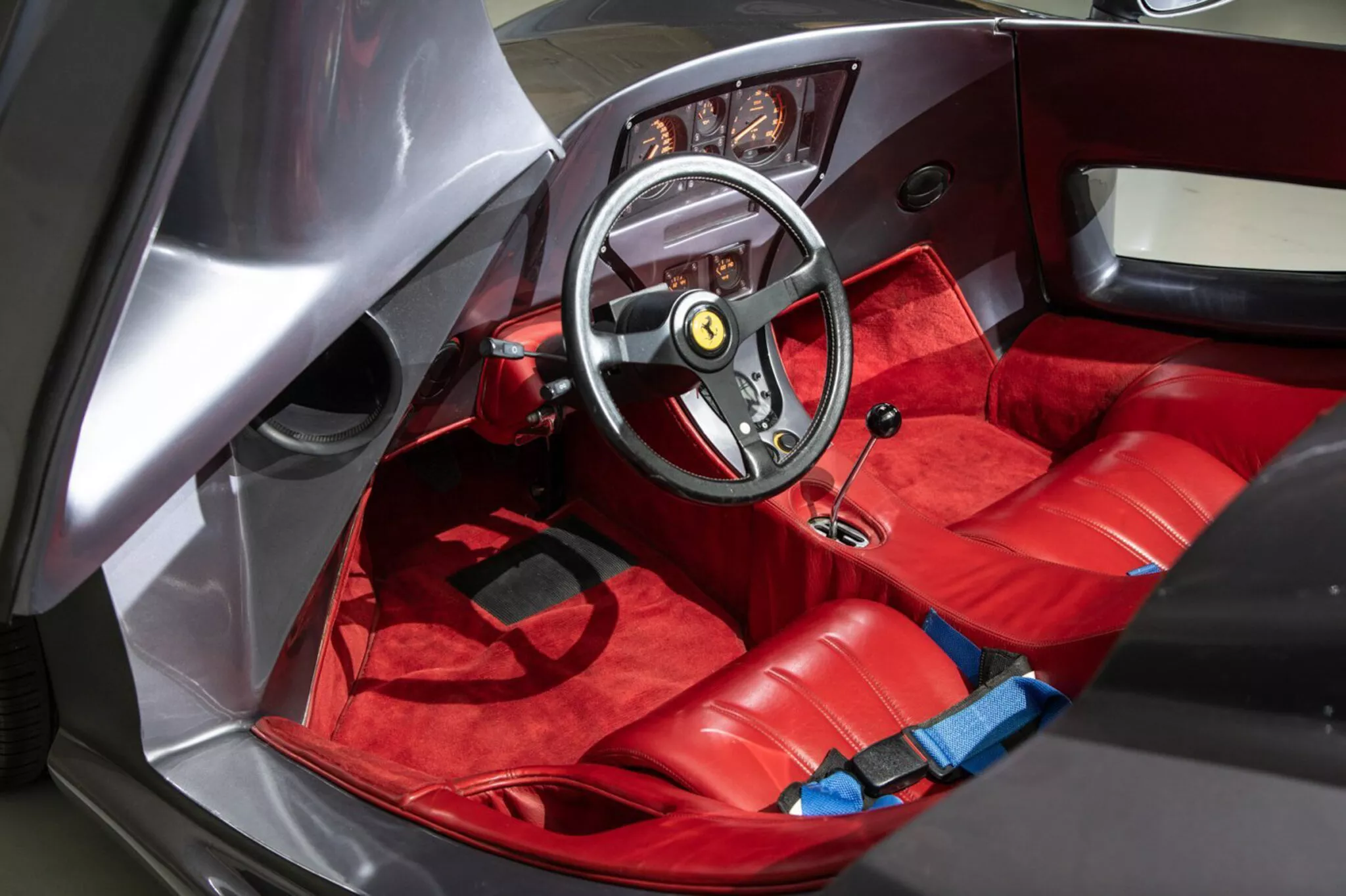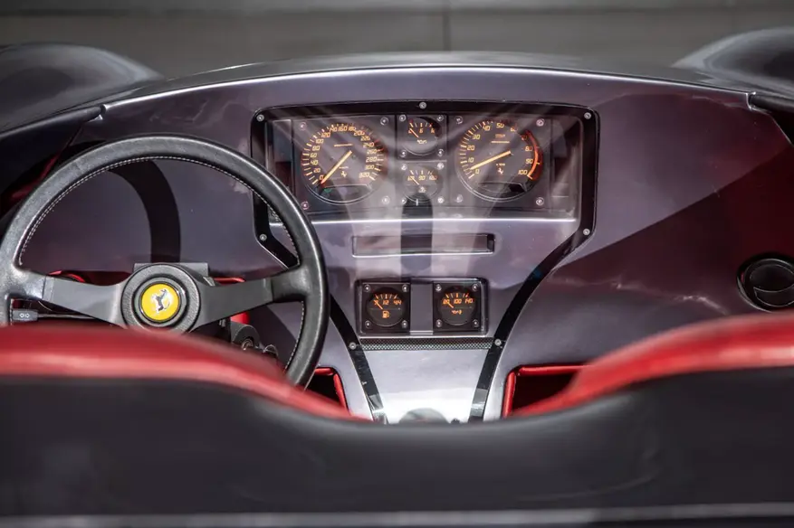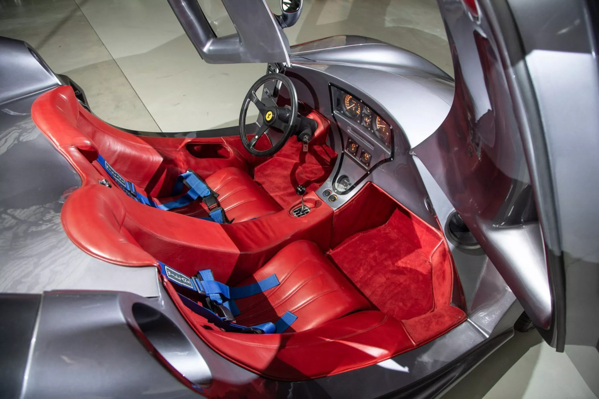 Особенностью интерьера являются сиденья, интегрированные непосредственно в конструкцию автомобиля — решение, которое стало стандартным для современных гиперкаров только спустя десятилетия. Приборная панель расположена в центре консоли.