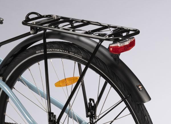 За переднее освещение отвечает фара Axa Compactline 35 Lux, за заднее — фонарь Axa Blueline rear. Транспорт весит 25,5 кг. Максимальная нагрузка на раму — 120 кг. Цена в настоящий момент — 1590 евро.