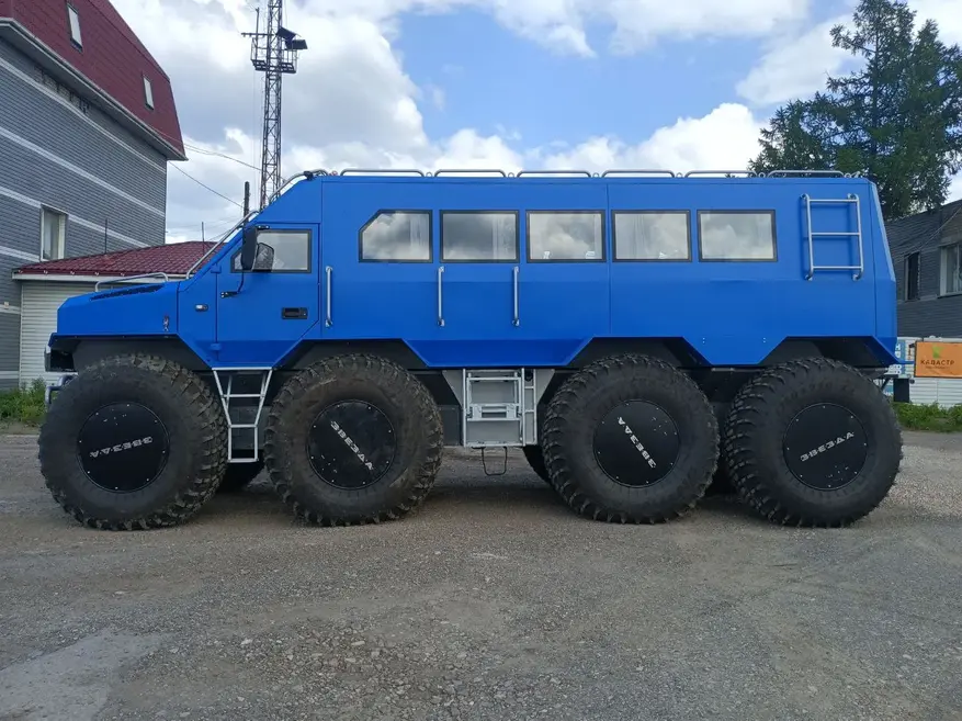 Корпус машины имеет форму лодки, а колёса низкого давления обеспечивают движение по снегу, болотистой местности и воде. Вездеход способен развивать скорость до 25 км/ч на воде и до 80 км/ч по земле. Силовой агрегат представляет собой турбодизель ЯМЗ-534 объёмом 4.4 литра. Двигатель соединён с механической коробкой передач, а возможность переключения по схеме 8x8 обеспечивает проходимость на любых покрытиях.