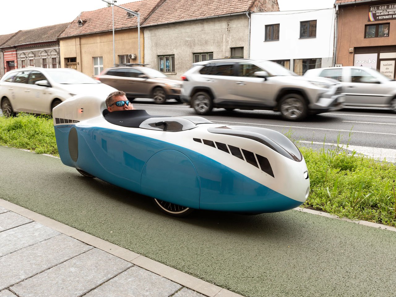 Техническое оснащение включает модернизированную заднюю подвеску для сглаживания дорожных вибраций, кассеты большего размера для лучшего преодоления подъемов и усовершенствованную систему рулевого управления. Веломобиль оборудован встроенными передними и задними фонарями для повышения заметности в условиях плохой видимости.
