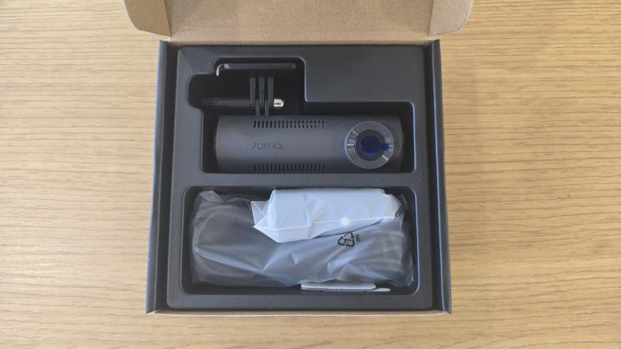 Видеорегистратор 70mai M310 поставляется в компактной коробке из плотного картона, выполненной в черных тонах с минималистичным дизайном. Коробка содержит на себе изображение устройства, а также информацию об основных технических характеристиках.