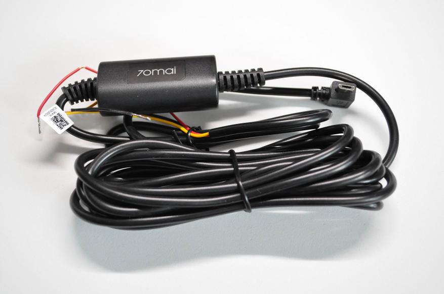 Дополнительно для данного регистратора можно купить кабель 70mai Hardware Kit для прямого подключения к бортовой сети автомобиля. Он потребуется в том случае, если вы захотите воспользоваться охранной функцией регистратора для контроля окружающей обстановки на парковке, активирующей запись на карту памяти по срабатыванию датчика удара или для постоянной интервальной съёмки. Несмотря на то, что у некоторых автомобилей (преимущественно отечественных) питание прикуривателя не обесточивается после выключения зажигания, задействовать охранную функцию без подключения регистратора данным кабелем, не удастся. Однако злоупотреблять данной функцией я бы не стал, позже объясню почему. Также в комплекте имеется блок питания в прикуриватель с параметрами питания 5 В 2А и разъёмом USB-A.