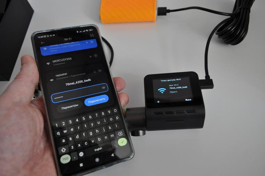Затем регистратор уведомляет, что парковочный кабель питания не подключён, после чего предлагает скачать приложение по QR коду с экрана регистратора.