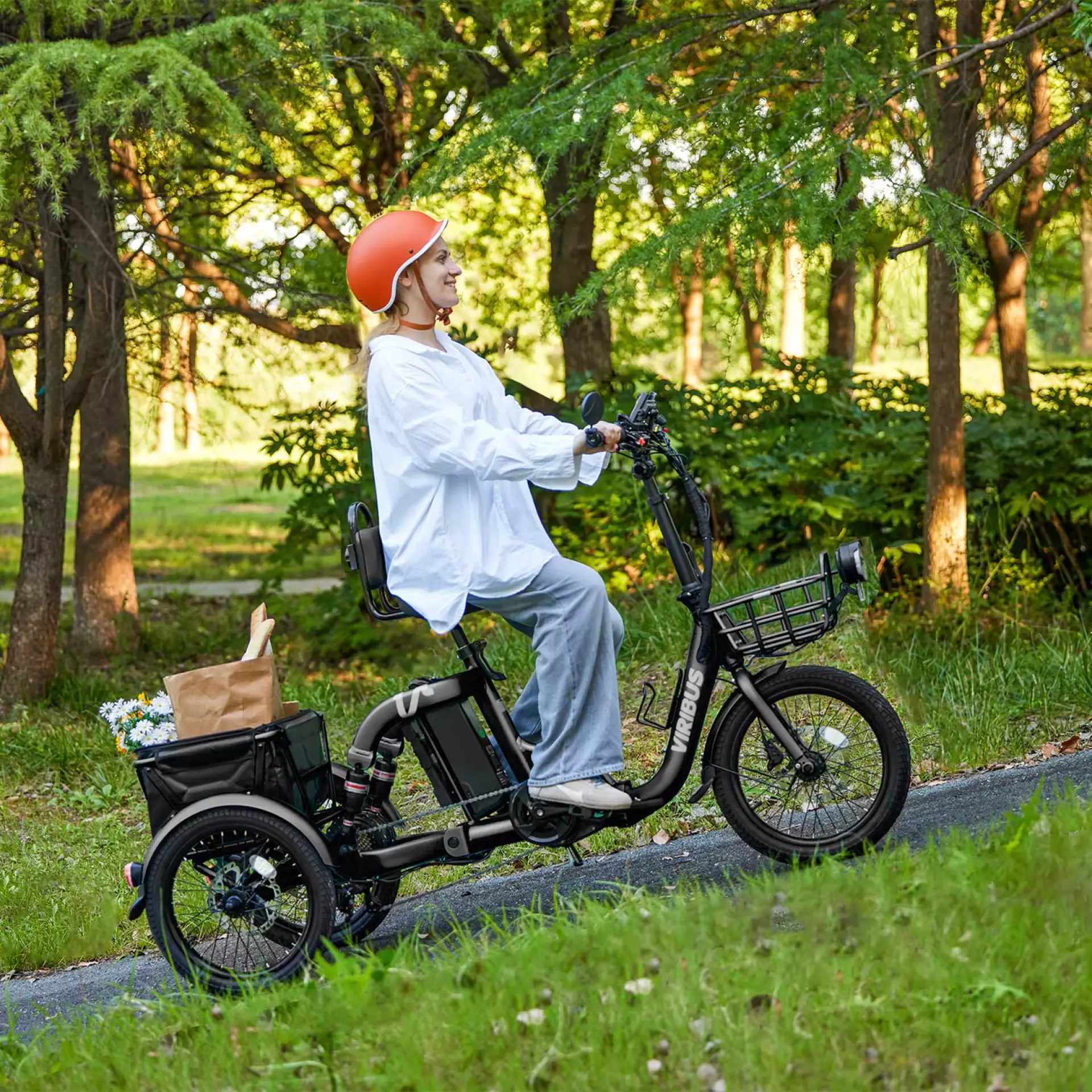 Трициклы оснащены электродвигателем номинальной мощностью 750 Вт с пиковым показателем 1200 Вт. Крутящий момент составляет 80 Нм. За подседельным штырём расположена аккумуляторная батарея ёмкостью 720 Вт·ч. Максимальная скорость ограничена 32 км/ч при использовании педалирования с электроприводом или режима газа.