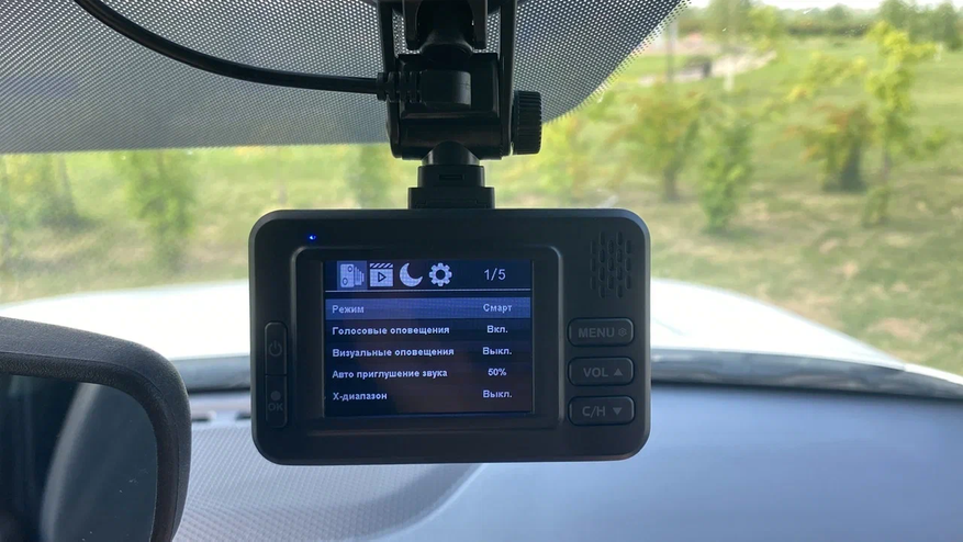 3 дюйма на IPS-матрице — стандарт комфортного использования для гибридов, так как, помимо настройки и отслеживания работы видеорегистратора, на экран выводится информация с радарной части и GPS-информера.