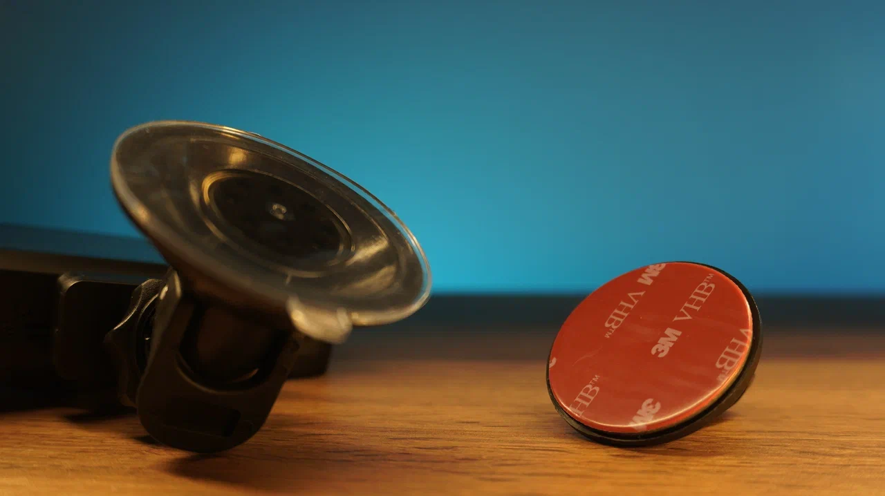Крепиться прибор может на 3М-скотч или присоску. Выбор зависит от формата эксплуатации: 3М занимает меньше места на стекле и лучше фиксирует, а присоска позволяет быстро установить/переустановить устройство. Если планируете устанавливать на 3М, то обязательно докупайте антистатическую плёнку, и уже поверх неё клейте ленту — так вам не придётся отдирать кусочки ленты при демонтаже крепления.
