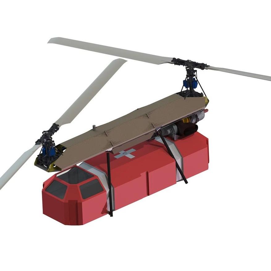 Конструкция аппарата состоит из несущей рамы, на которой размещены роторы для вертикального подъёма. В задней секции установлен турбовальный силовой агрегат, работающий на газообразном топливе. Инженеры применили модульный принцип проектирования, что позволяет заменять различные элементы корпуса под единой несущей платформой.