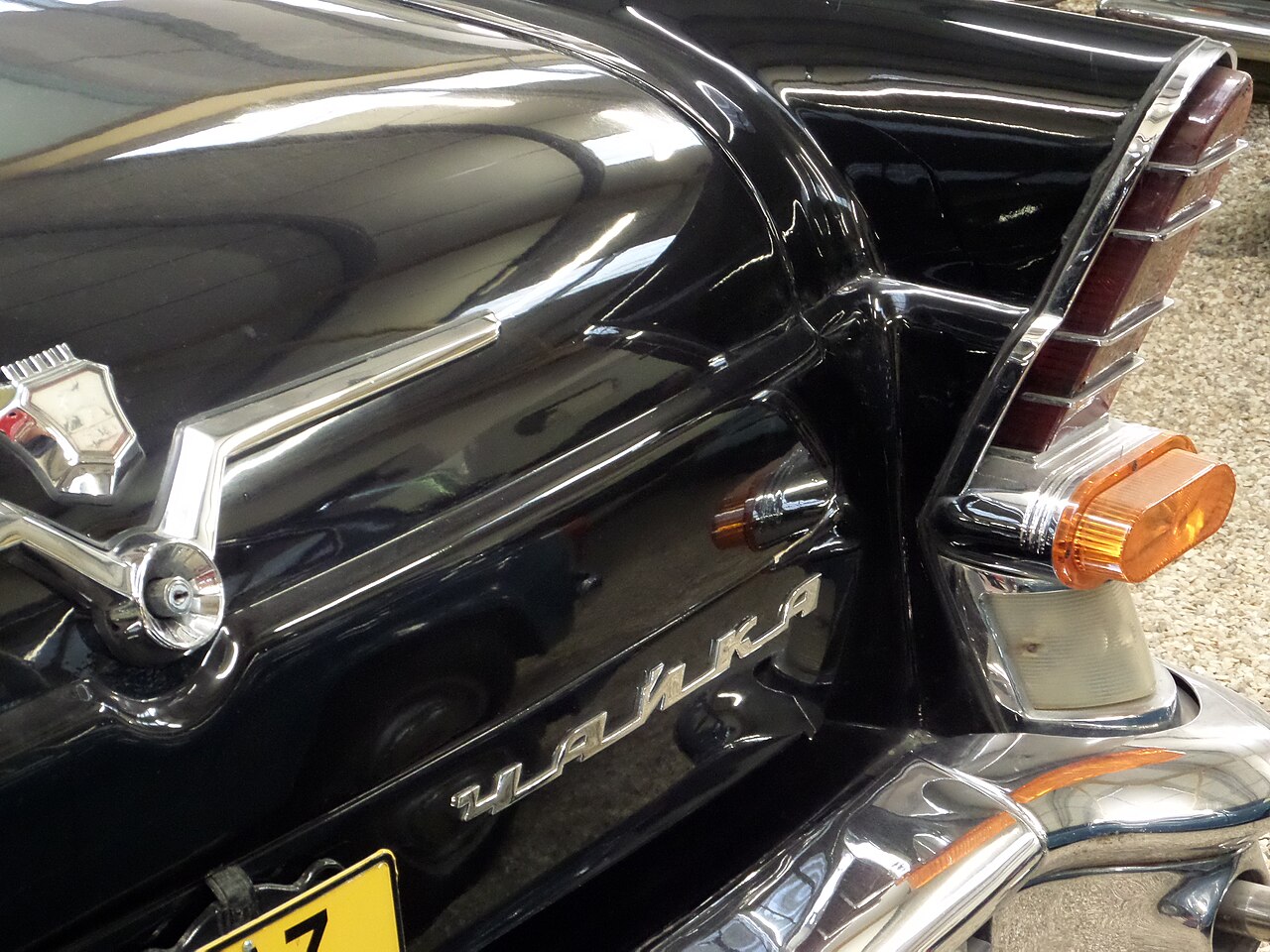 Характерный силуэт с вытянутым капотом и ниспадающей линией крыши напоминал Lincoln Capri. Передняя часть с массивной решеткой радиатора и выраженными «бровями» над фарами черпала вдохновение у Mercury моделей 1955-56 годов. Даже легендарные задние кили и V-образные фонари, ставшие визитной карточкой «Чайки», были переосмыслением стиля «детройтского барокко».