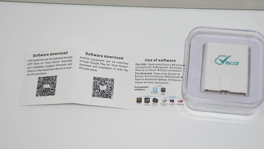 Поставляется Vgate iCar Pro компактной упаковке (акриловая коробочка) с инструкцией. Сам сканер реально компактный, и в этом его основное преимущество. Положил такой сканер в бардачок - он «каши не просит»: у него не садится батарея, и не занимает много места. А в случае, когда понадобится — просто достаем и подключаем.
