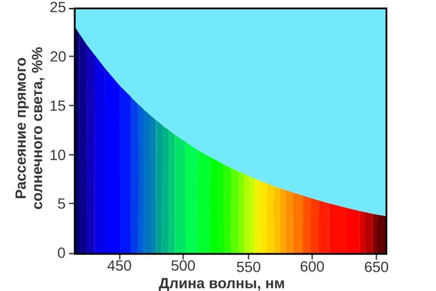 Когда луч белого света (который является смесью всех цветов) попадает в эту среду, короткие волны (синий спектр) начинают активно рассеиваться, сталкиваясь с каплями воды. Возникает эффект «белой стены», то есть, световой завесы, которая слепит водителя и снижает видимость.
