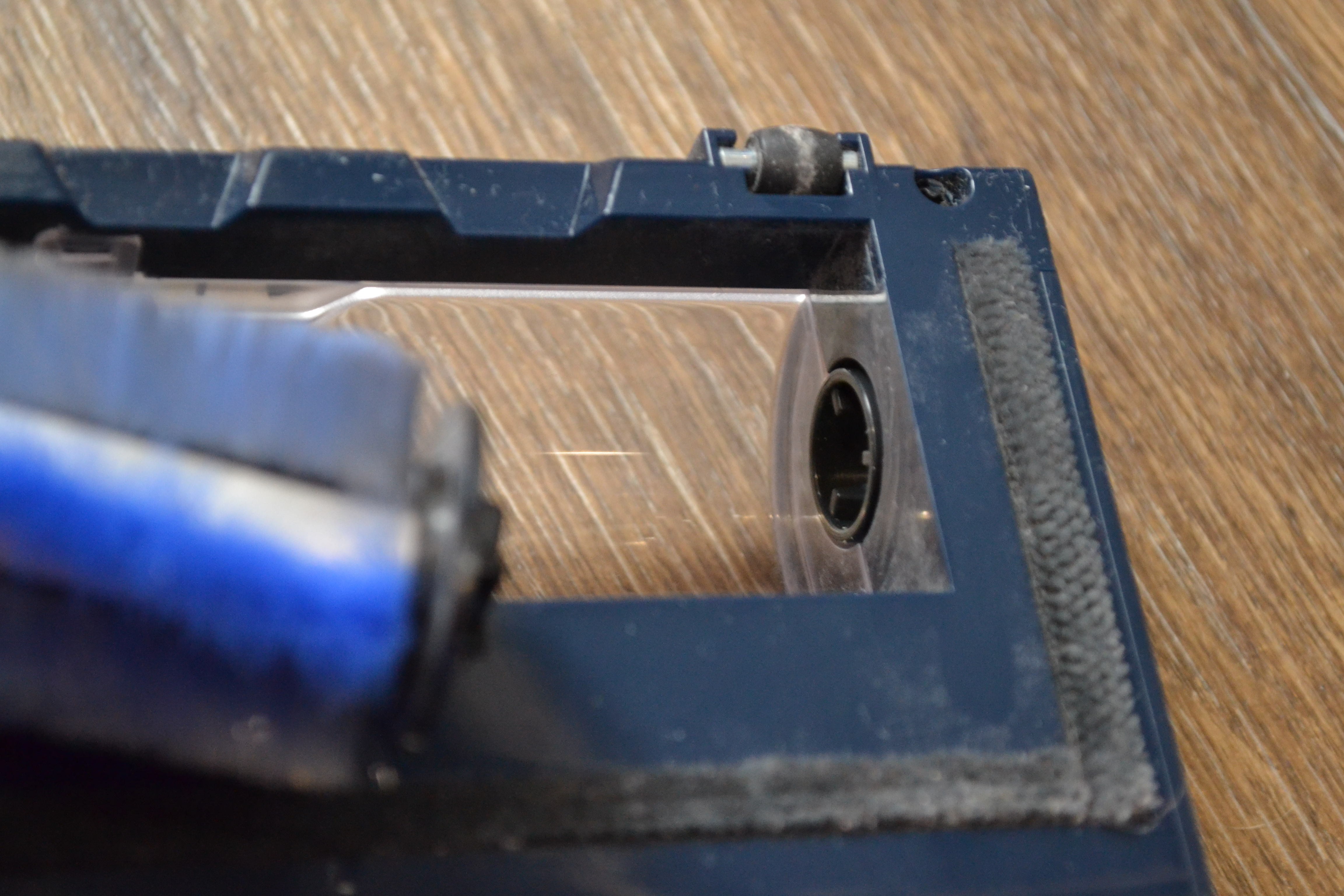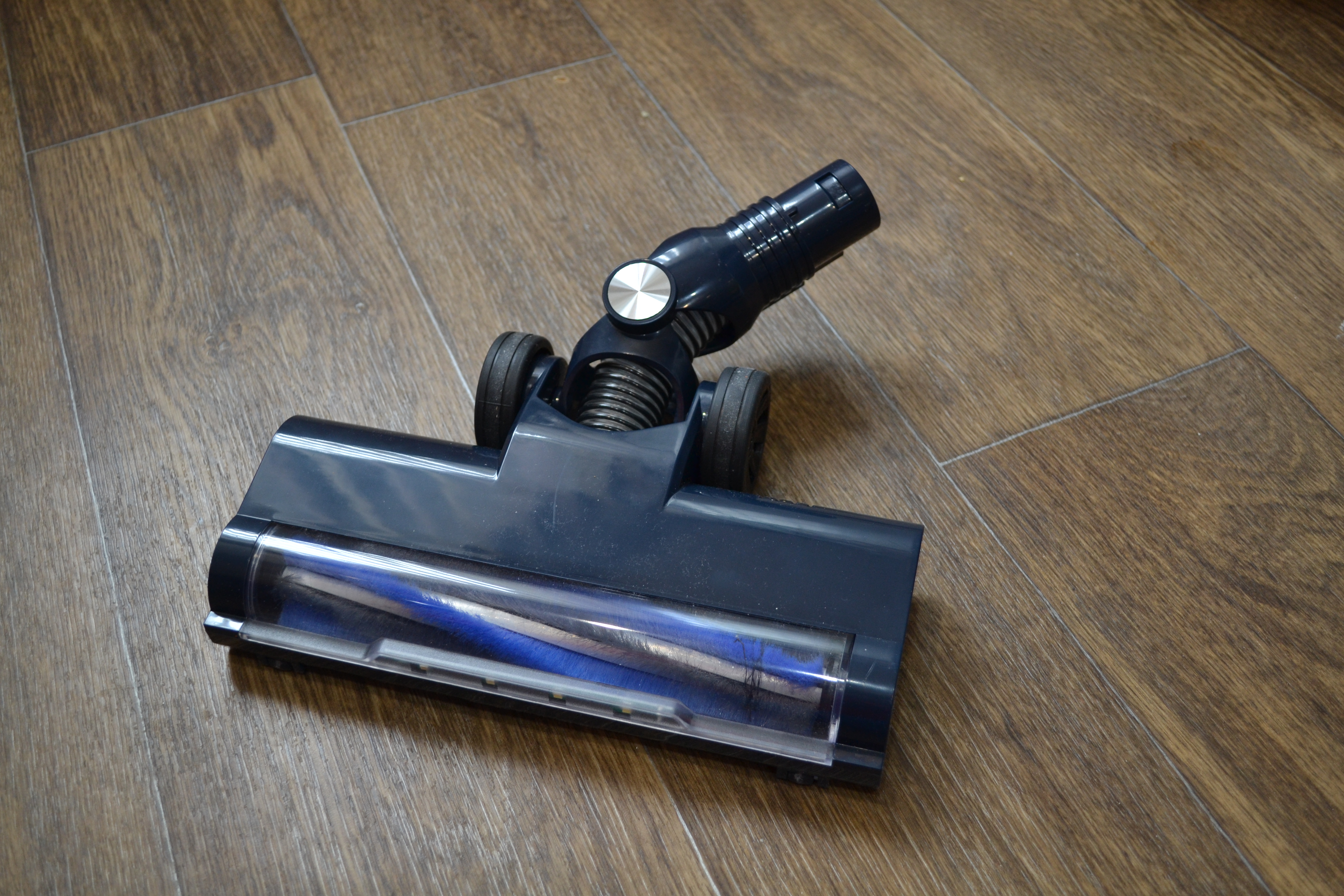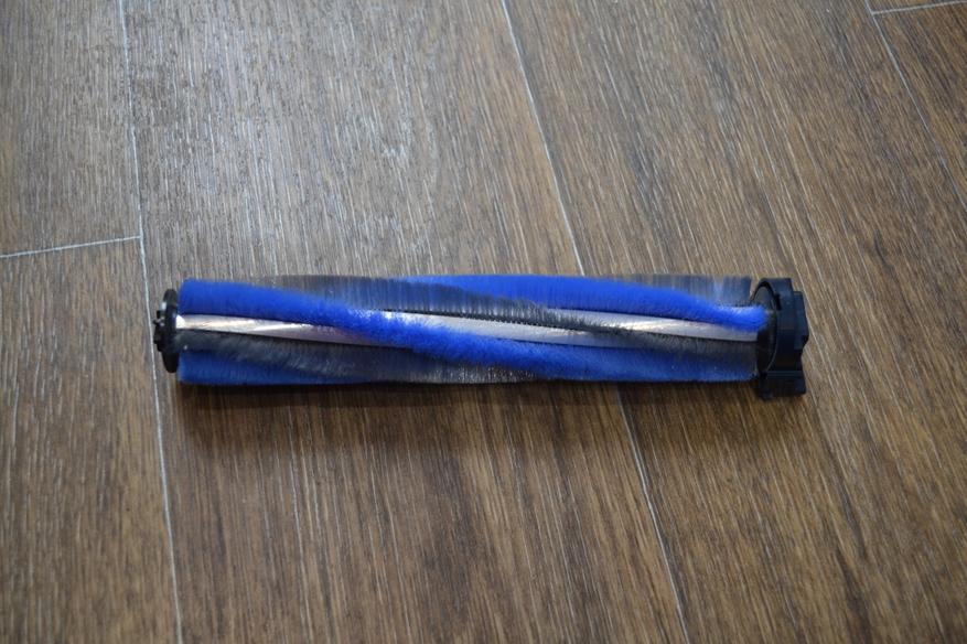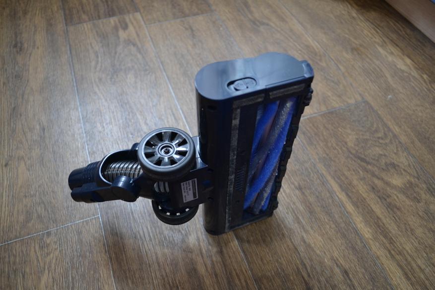 Основной инструмент нашего пылесоса это турбощетка с электроприводом и фарой из 4 диодов. Для очистки вала с ворсом его можно снять сдвинув фиксатор на правой стороне. Сборка в обратном порядке.