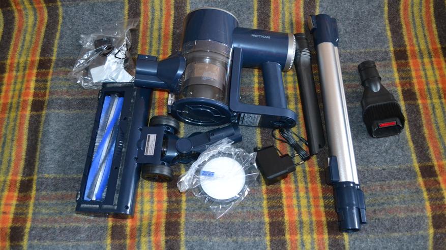 Вот и пополнился домашний зоопарк пылесосом без проводов. Вертикальный аккумуляторный пылесос от китайского производителя Prettycare модель W200. Это оем-продукт с 20 летней историей производства электротоваров для европейского и американского рынка. Любят китайцы в рекламе накинуть себе годков. Продукт можно отнести к пылесосам оперативно-тактическим. Просыпал, раздавил кофейные зерна, макароны, крупы, обнаружил клочки шерсти, нитки, пыль на книжной полке - снял с крючка на стене, нажал кнопку и собрал в стакан все с пола. Работает этот аппарат на одном заряде не более 20-30 минут.