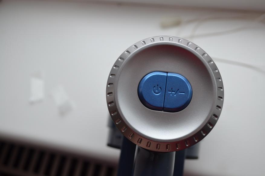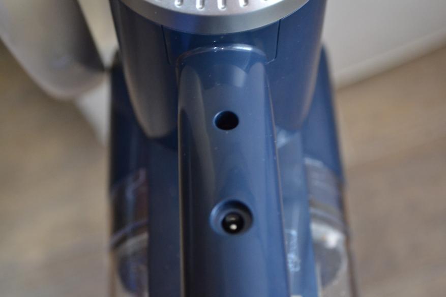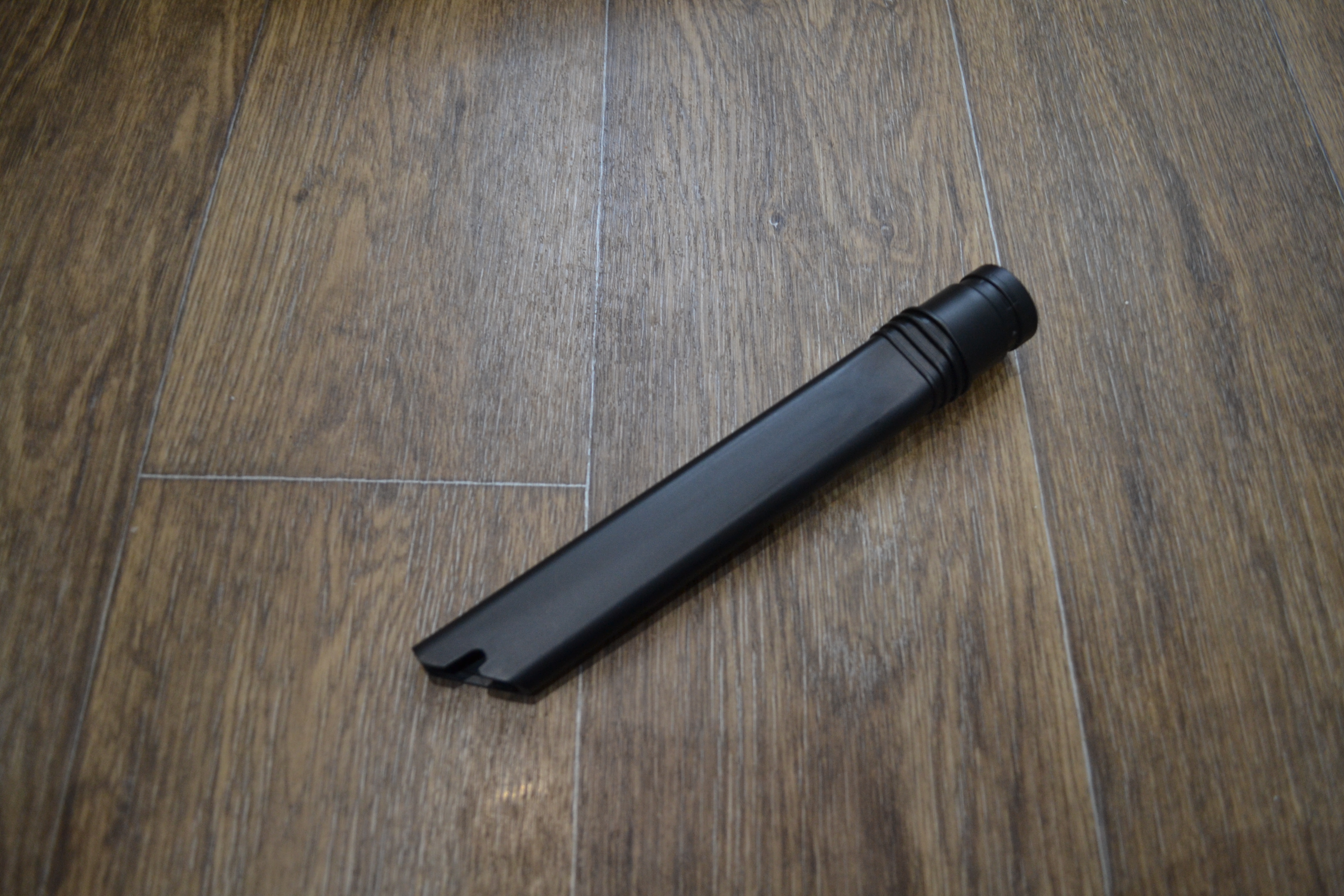 Открывается нижняя крышка тоже неудобно. Фиксатор лучше было сместить на 90 градусов влево. И в комплекте не хватает кисти для обметания от мелкого сора. Так же отмечу примитивное настенное крепление и подслеповатый индикатор заряда батареи. Клавиша включения совмещена с 2 скоростью. При включении на максимум заряда батареи хватит на 12-15 минут, 25-30 минут на минимальной мощности. Зарядка долгая, минимум 4,5 часа. Разъем для подключения БП не помешало бы выделить, хотя бы красной кольцевой наклейкой. БП на 27В 0,5А.