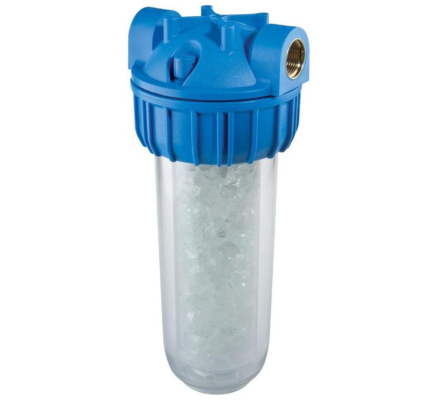 Полифосфатные (солевые) фильтры устанавливаются в месте подключения СМ к водопроводу. Это бюджетный способ снижения жёсткости воды и избежания от накипи. Но нужно учитывать, что примеси фосфатов выступают отличной средой для размножения бактерий. Если не проводить регулярные холостые запуски на высоких температурах, то через некоторое время можно обнаружить неприятный сырой запах из барабана. А если это дело и вовсе запустить, то может понадобиться полноценная чистка от специалиста.
