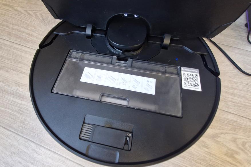 Пылесборник скрыт внутри корпуса под крышкой: