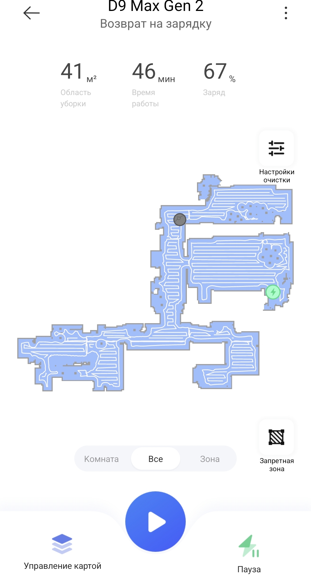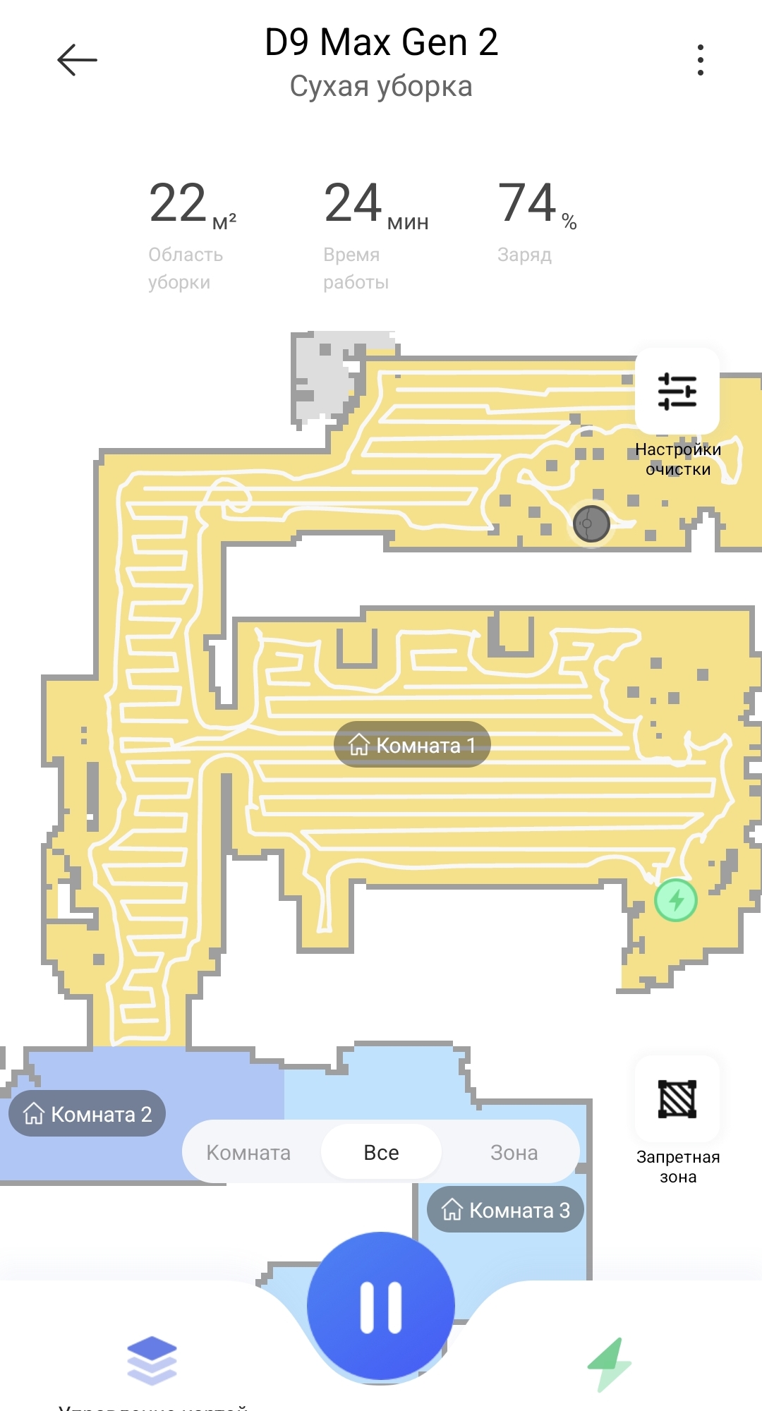 К построению карты помещения вопросов не возникло, продвинутая работа с картой имеется (разбивка на участки, запретные зоны, этажи, тип уборки). Если сравнивать с Neatsvor X600 тоже с LDS, тут больше детальности на карте.