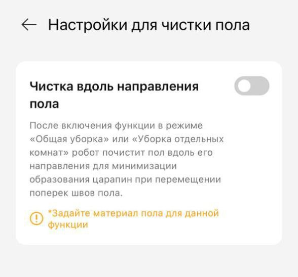 Настройки для чистки пола: чистка вдоль направления пола. Определяется кладка и проводится влажная уборка наиболее безопасная для плинтусов и покрытия пола.