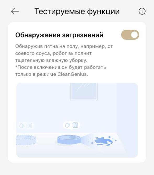 Экспериментальная функция: робот выявляет большие загрязнения камерой и проходит область несколько раз, пока не очистит въевшуюся грязь.
