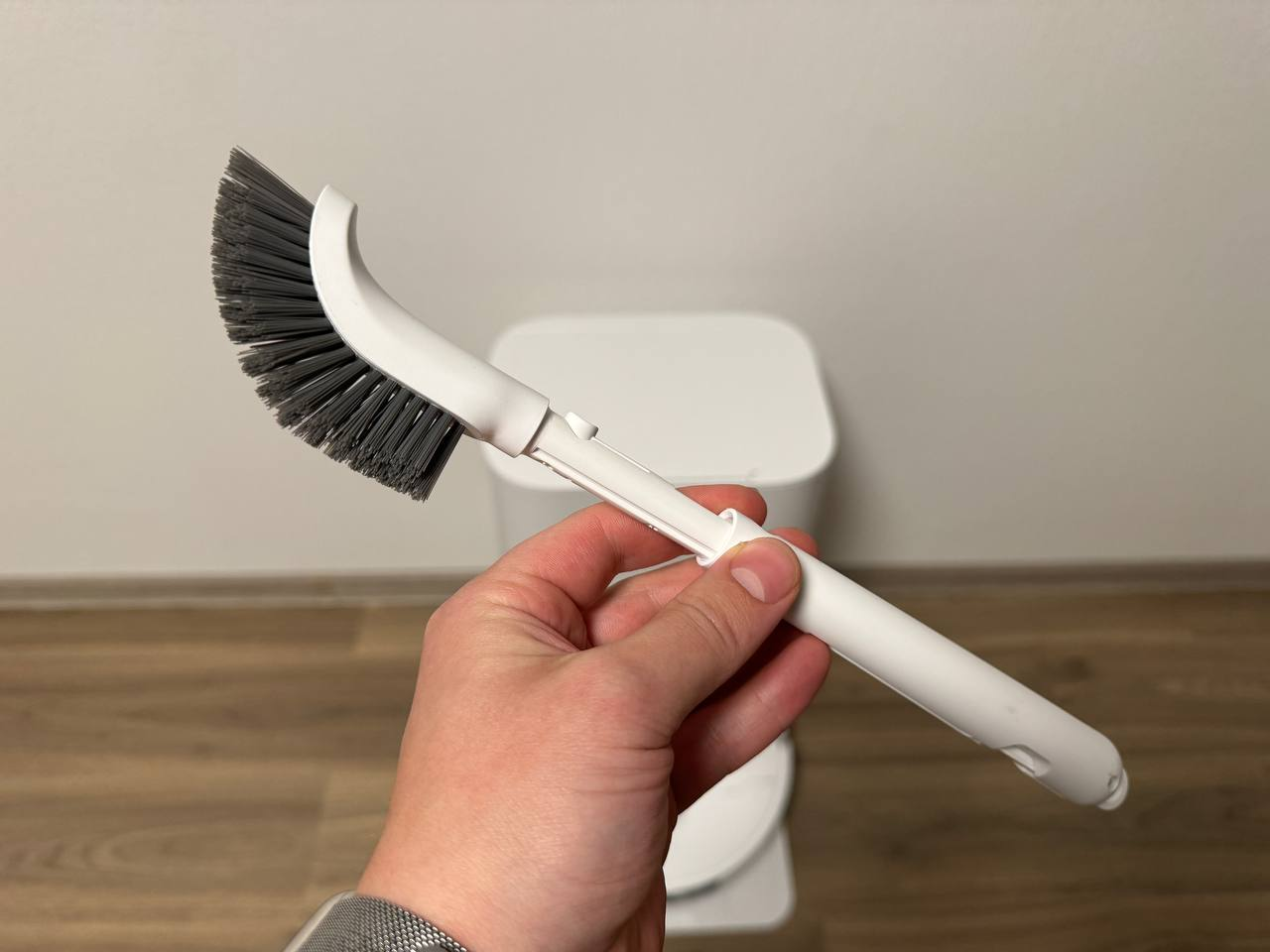Выдвижной ёршик для очистки базы оснащён крючком для подвешивания. Ёршик предназначен для очищения турбощётки, также можно использовать для других труднодоступных мест.