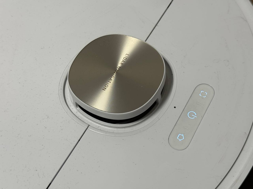 Лидар расположен в передней части устройства, что предотвращает застревание робота под низкой мебелью. Функции кнопок: возврат домой, включение, зональная уборка. Есть индикатор работы.