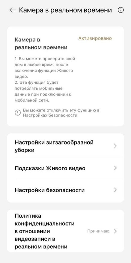 Функция «Камера в реальном времени» позволяет проверять дом в не дома в любое время, но использует мобильные данные. Можно отключить в Настройках безопасности.
