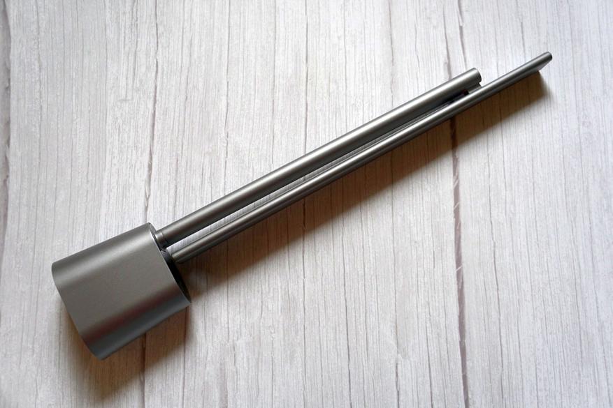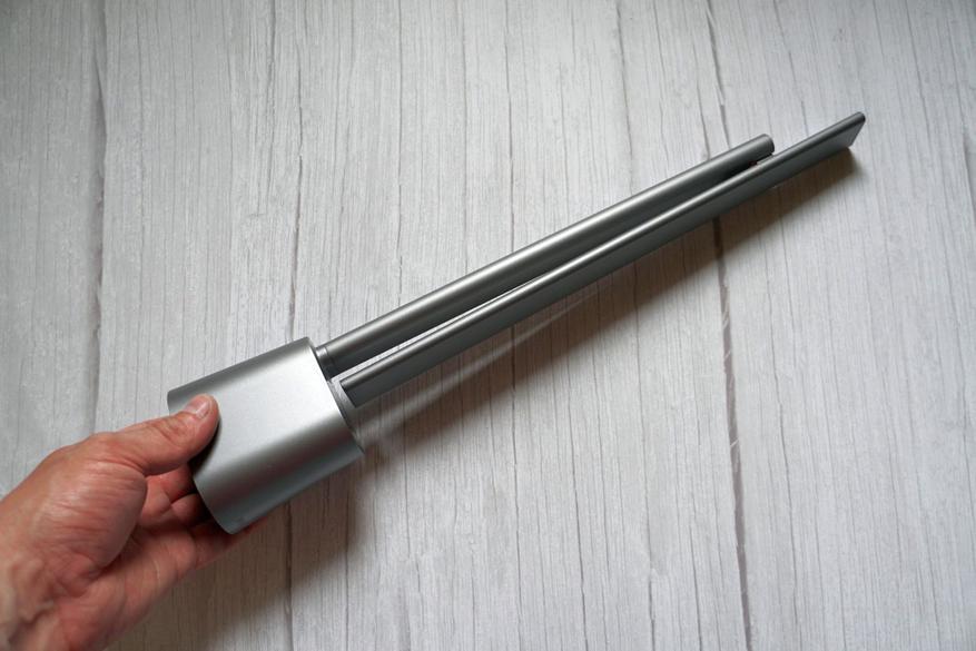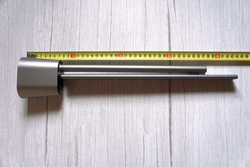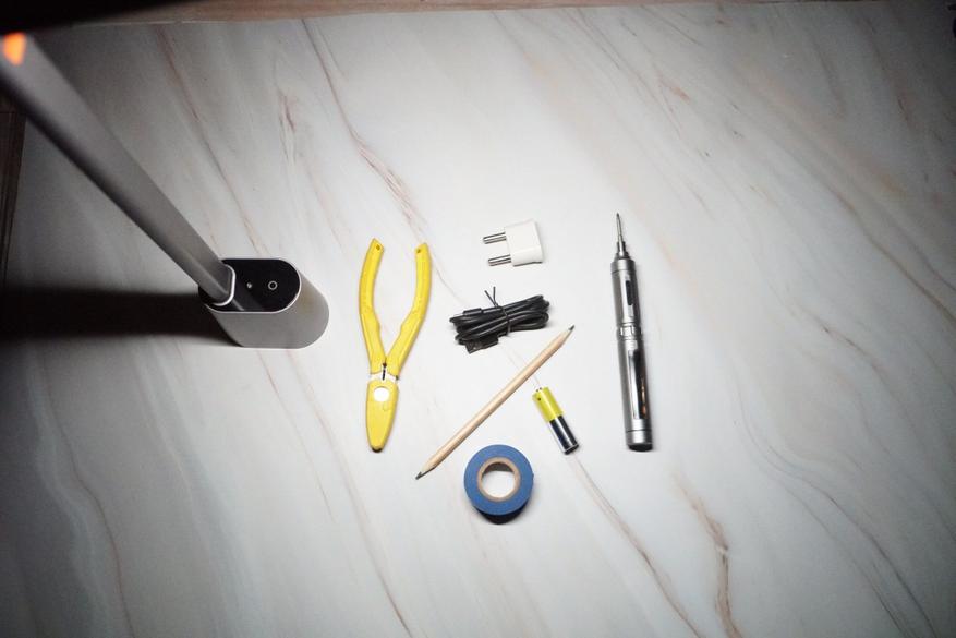 Основная стойка и корпус блока осветительной панели настольной лампы изготовлены из анодированного алюминия с матовым покрытием, нижняя часть с батареей и управляющим блоком — из пластика, выкрашенного в цвет тот же цвет.