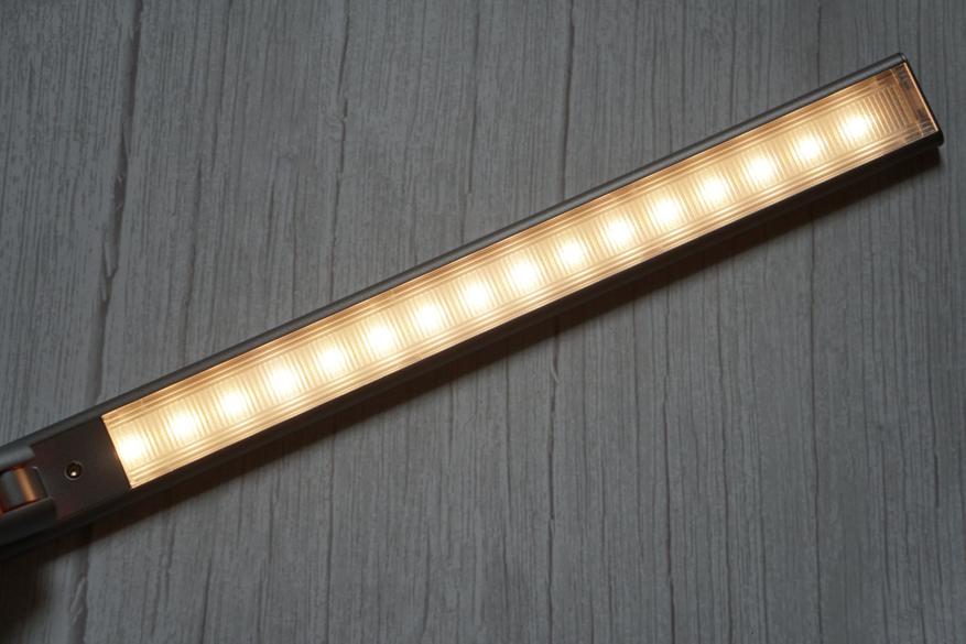 Длина осветительной панели 25см, она содержит два типа светодиодов, холодного и теплого цветов: