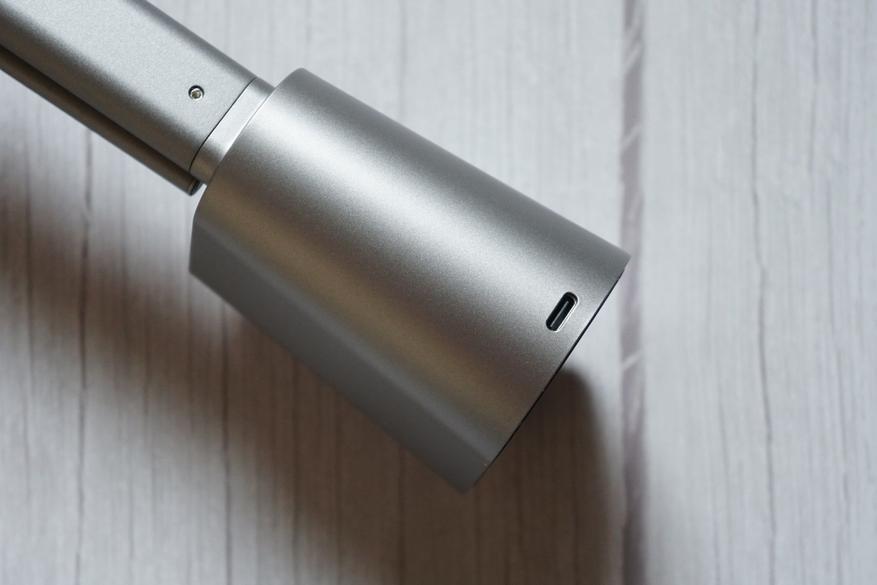 Зарядка лампы осуществляется через порт Type-C. Отмечу, что благодаря форме нижней платформы, противоскользящей наклейке, а также, тому, что основной вес лампы сосредоточен именно снизу, лампа очень устойчиво стоит на горизонтальной поверхности: